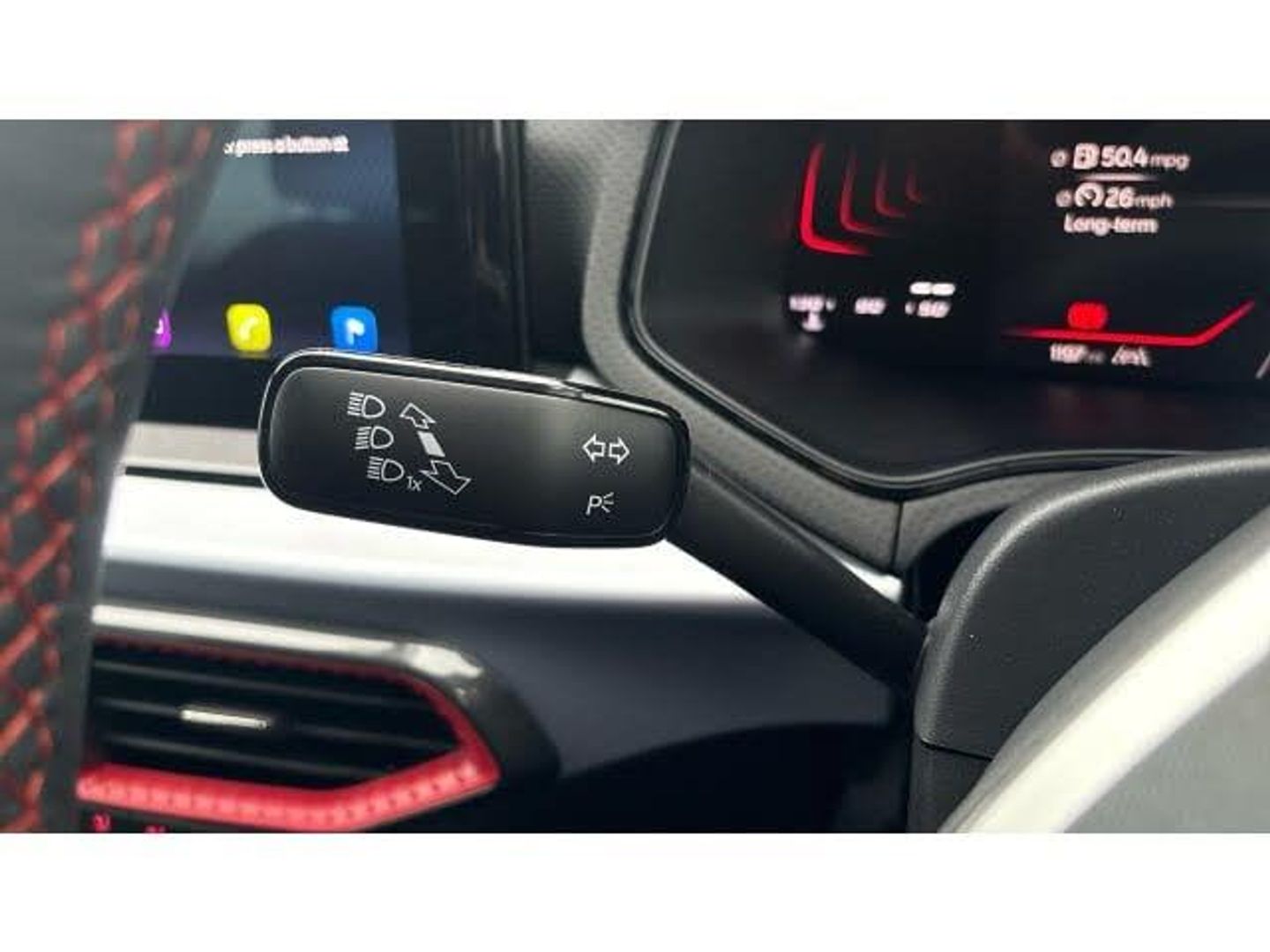 Electric front windows, Electric rear windows, Automatic rain sensing wipers, Dark tinted rear windows, Brilliant black window surrounds, Rear wiper, ABS, Electronic stability control, Hill hold control, Energy recovery system, Sports suspension, Bluetooth audio streaming with handsfree system, E-call, Power Steering, Speed limiter, Lane assist, Multi-Collision Braking, Traffic sign recognition, SEAT logo boot release, Auto start and stop system, Outside temperature gauge, Trip computer, Digital clock, Low fuel warning light, 'Lights On' Reminder warning buzzer, 9.2" touchscreen navigation system with type C USB socket, Voice control and DAB/AM/FM radio, Full link smartphone integration with mirror link, wireless apple carplay, Google android auto + USB Type C cable for apple and android devices, 8" Digital cockpit, Seat connect plus with safety, service, remote and online, Auto dimming rear view mirror, Electric adjustable/heated/folding door mirrors