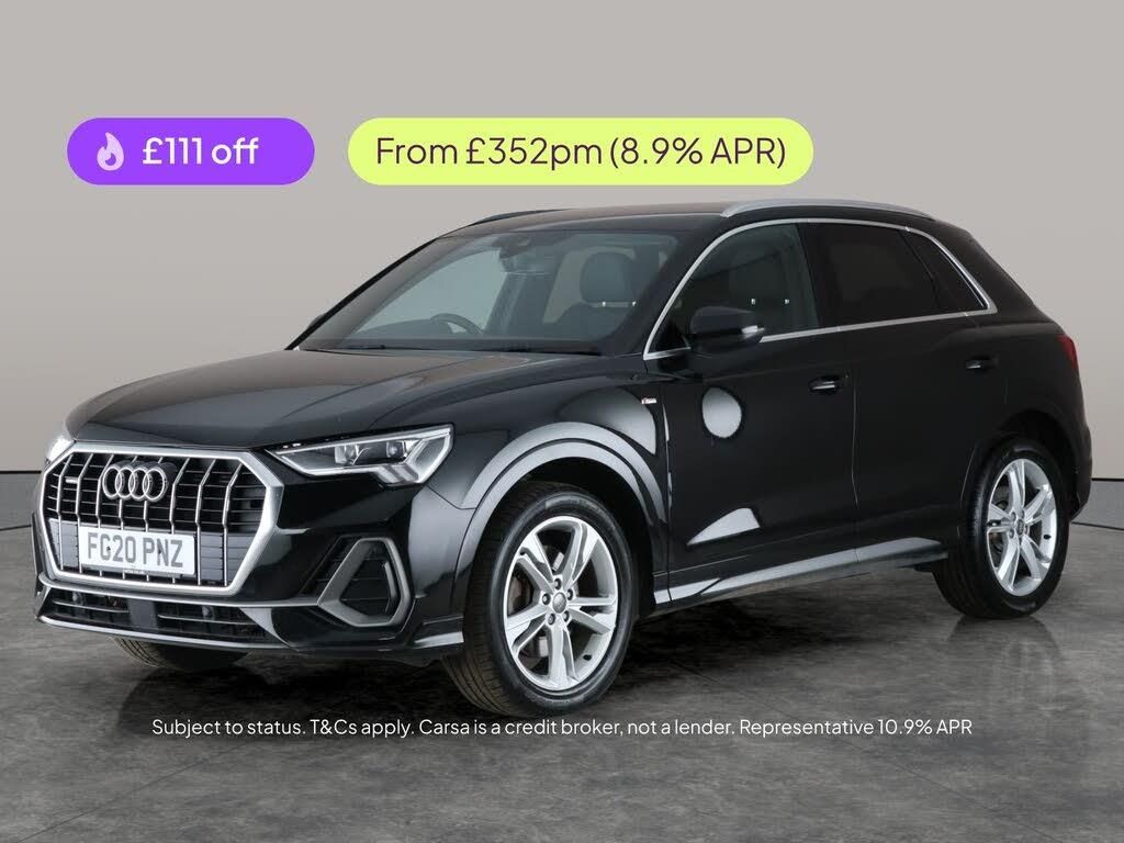 Experience premium driving with this stylish black Audi Q3 S line. Enjoy advanced tech like MMI Navigation Plus, Apple CarPlay, and LED headlights for brilliant visibility. Stay safe with Lane Departure Warning, Traffic Sign Recognition, and cruise control. Personalise your journeys with selectable driving modes and relax in half leather seats. The car stands out with eye-catching 19in alloy wheels and keeps everyone comfortable with air conditioning and climate control. Discover a luxurious and agile SUV that ticks every box. 5 services recorded, last serviced on 13/10/2025 at 39,106 miles. MOT to 09/07/2026. Visit our website for service history, online valuation, full vehicle specification plus multiple images. Certain features listed may be available via subscription packages at extra costs, please consult with Audi for details. Any feature/option specified here is from 3rd party data. We cannot guarantee the accuracy of any specification supplied by a 3rd party. We recommend that you physically check the specification of the vehicle on site prior to purchase. This information does not form part of the buying contract. Terms & Conditions apply. We have over 2,000 cars available from our 10 national branches, check our website to see all our stock. Our Trustpilot rating is 4.4/5 with over 9,000 reviews.