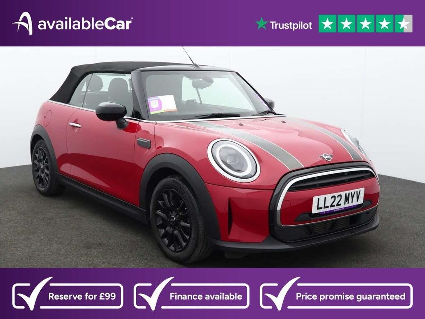12 Volt Socket in Front Centre Console,15in Alloy Wheels - Heli Spoke,3 Point Seatbelts on all Seats,4 Lashing Eyes in Luggage Compartment,8.8in Touch Screen with LED Ring,Active Roll-Over Protection,Air Conditioning - Manual,Airbags,Alarm System,Anti-Lock Braking System - ABS,Apple Carplay,Automatic Headlight Activation Switch,Bluetooth for Compatible Mobile Phone with Audio Streaming,Carbon Black Colour Line - Knee Roll and Door Armrests,Chrome Highlights,Convertible Pack,Cruise Control with Brake Function,Cupholders,DAB Tuner and FM Tuner,Door Sill Strips - Metal with MINI,Dynamic Brake Lights,Dynamic Stability Control - DSC,Easy Load Function,Electric Windows - Front,Electro-Mechanical Steering with Speed Dependant Steering Assistance,Electronic Gear Shifter,Electronic Vehicle Immobiliser,Exhaust Tailpipe - Left with Chrome Finisher,Flexible Car Sharing Preparation,Floor Mats - Velour,Folding Rear Seats - 50-50,Front Passenger ISOFIX and Airbag De-Activation Switch,Fuel Filler Cap in Body Colour,Fully Electric Black Soft Top with Integrated Sun-Roof Functionality,Glove Compartment,Heated Rear Window,Heated Windscreen Washer Jets,Instrument Cluster,Interior Lighting,Interior Trim - Piano Black,Keyless Go,LED Headlights with Closed Ring as Daytime Driving Lights,LED Reading Lights - Vanity Mirror Lights - Front Foot Well Lights - Spotlights on Front Seats,Leatherette Gearshift Lever and Handbrake Gaiters,MINI E-Call,MINI TeleServices,Mechanical Seat Adjustment - Forward-Back and Backrest for Front Seats - Driver Seat Height Adjust,Mirror Caps in Body Colour,Model Logo Cooper on Right of Tailgate,Multifunction Controls for Steering Wheel,On-Board Computer,PDC - Park Distance Control - Rear,Performance Control,Radiator Grille - Chrome Border with Black High-Gloss Slats,Rain Sensor Window Wipers,Rear Fog Light,Rear LED Lights with Union Jack Design,Rear Passenger ISOFIX,Side Scuttle Panels with Integrated Indicators,Single Tone Fanfare Horn,Speakers - 4,Sport Leather Steering Wheel,Steering Column Height and Length Adjustment,Storage - Compartments in Doors,Sun Visor with Vanity Mirrors,Sun-Heat Protection Glass,TPWS - Tyre Pressure Warning System,Tool Kit,Tyre Repair Kit,White Indicators