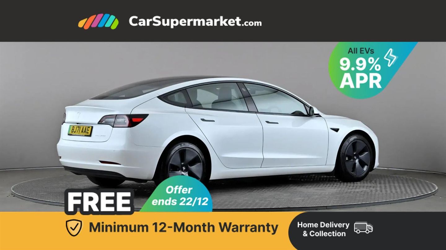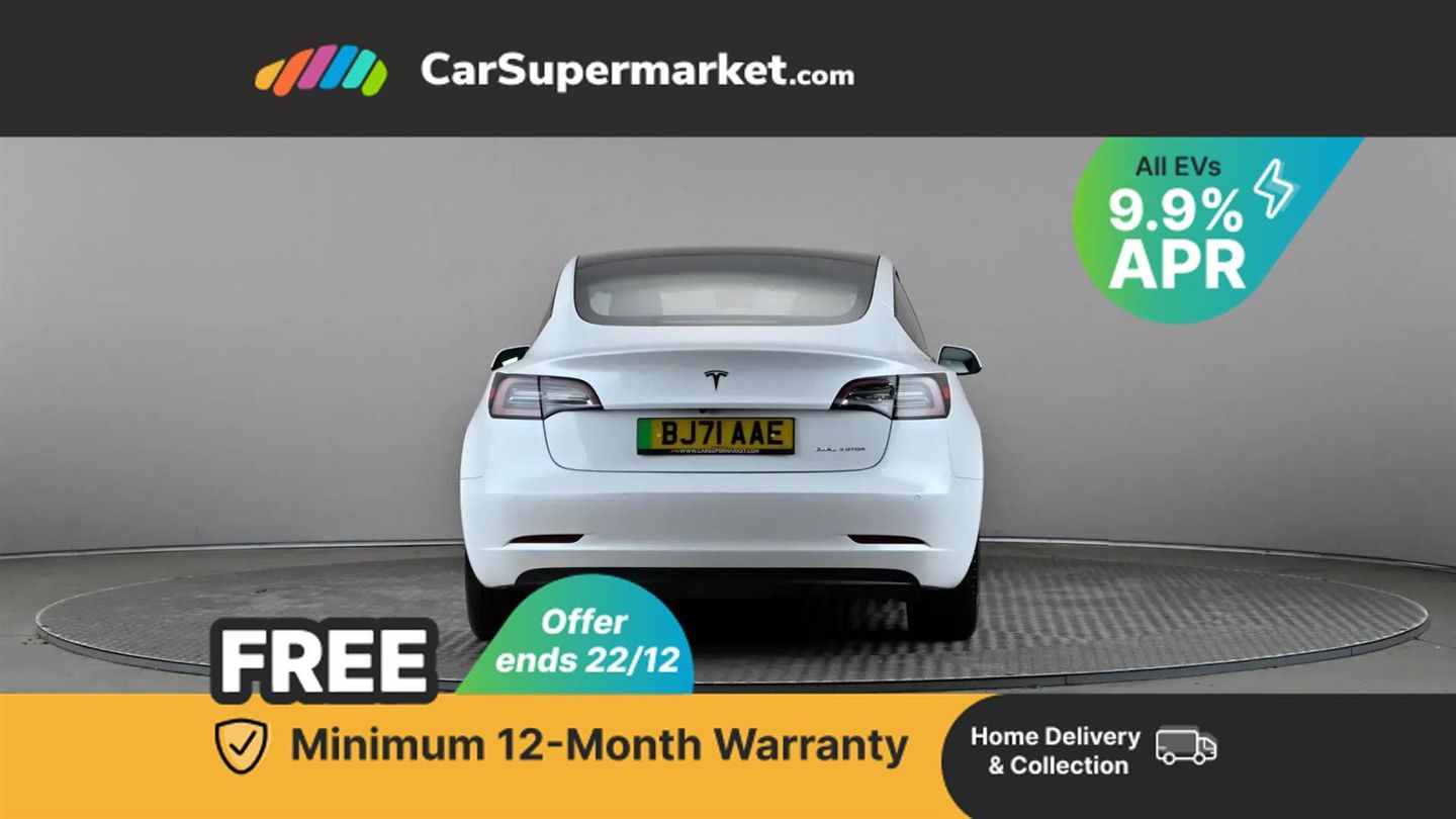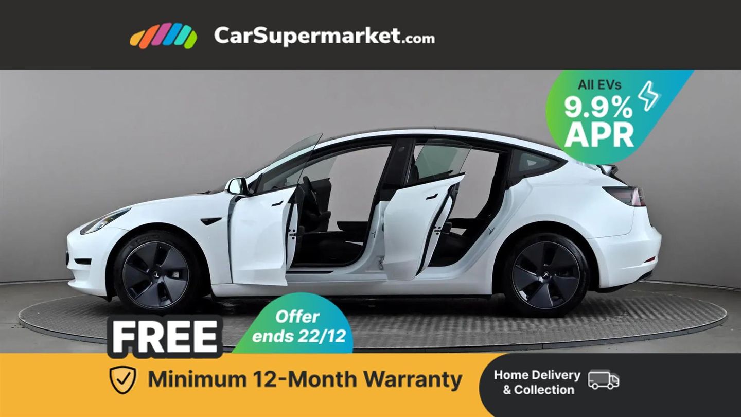 Cruise Control, Adaptive Cruise Control, Blind Spot Monitoring, Lane Departure Warning, Sat Nav, Traffic Sign Recognition, 15" Touchscreen, Digital Radio, Bluetooth, Heated Front Seats, Heated Steering Wheel, Keyless Entry, Wireless Phone Charging;This 2021 Tesla Model 3 Long Range boasts a clear vehicle history and has had only one owner, offering peace of mind for its next owner. As an electric vehicle with Four Wheel Drive, it combines efficiency with capable performance. The MOT is valid until August 2026, further underscoring its readiness for the road. Notable features include Adaptive Cruise Control for relaxed journeys, bright LED Headlights, a 2 Zone Climate Control system for personalised comfort, Rear Parking Sensors to aid manoeuvring, and a Heated Steering Wheel for those colder mornings.