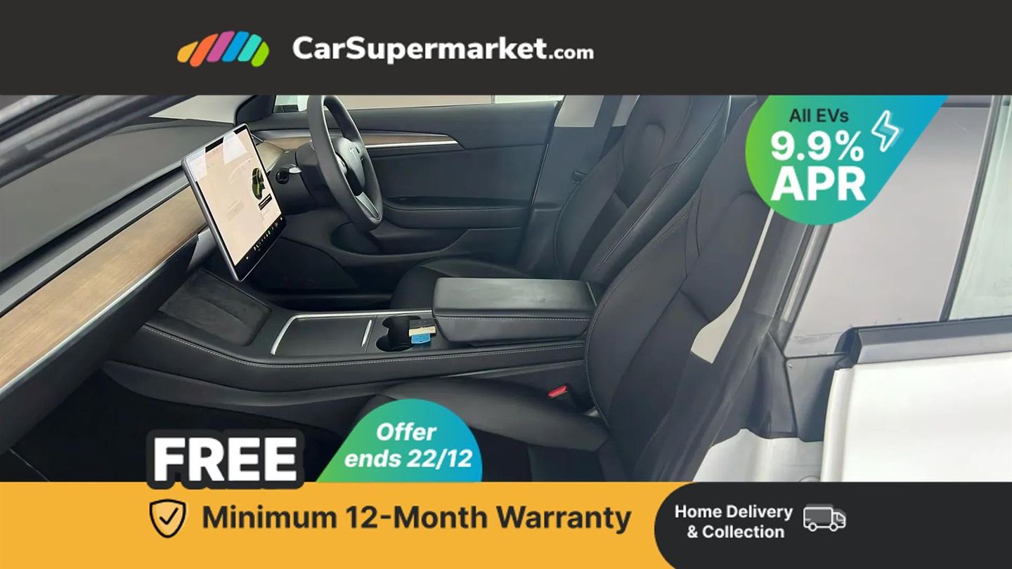 Adaptive cruise control,Adaptive steering,BLIS (Blind spot information system),Custom driver profiles,Electric assisted front and rear doors,Front parking sensor,Lane departure warning system,Location aware automatic garage door opener,Mobile telephone preparation,Navigation system,PAS,Power lift tailgate,Rear parking sensor,Reversing camera,Service indicator,Software updates over WiFi,Speed limit recognition,Steer-by-wire technology,Traffic sign recognition,Trip computer,Voice activated controls,11 kW AC onboard charger,CCS charging connector (250Kw Max),Dual motor AWD wheel drive,Tesla mobile connector + domestic adapter (British 3-pin),Type 2 connector (11Kw Max),15" Touchscreen,Audio remote control,DAB Digital radio,DVD System,Media storage,Music, FM radio and media over bluetooth connection,Premium audio with 13 speakers, 1 subwoofer, 2 amps and immersive sound,Steering wheel mounted controls,Tesla mobile app,Auto dimming rear view mirror,Auto dimming, power folding and heated side mirrors,Automated High beam assist,Automatic headlights and wipers,Body coloured bumpers,Electric front windows,LED daytime running lights,LED front fog lamps,LED Headlights,LED rear lights,Rear electric windows,Satin black exterior trim,12-way power adjustable front seats with lumbar support,2 zone climate control,4 USB - C ports,60/40 split folding rear seats,Ambient interior lighting,Center console with storage, 2 cup holders and armrest,Driver and front passenger sunvisors with illuminated vanity mirrors,Front compartment with sliding lid,Front head restraints,Glovebox, lockable with illumination,Heated front seats,Heated rear seats,Heated steering wheel,Isofix child seat anchor points,Map and reading lights,Metalised scroll wheels on steering wheel,Power adjustable steering wheel,Rear centre armrest, with 2 cup holders,Rear headrests,Satin black sill plates,Seat controls in graphite finish,Tinted glass roof with ultraviolet and infrared protection,Type 2 cable,3x3 point rear seat belts,6 airbags - Driver, front passenger, curtain and side airbags,ABS,Automatic emergency braking and collision avoidance warning,ESC - Electronic Stability Control + traction control,ESP,Tyre pressure monitor,Alarm,Dashcam,Immobiliser,Keyless driving and keyless entry,Keyless entry and remote climate control with app,Remote central locking,Wireless phone charging,Premium open pore wood decor