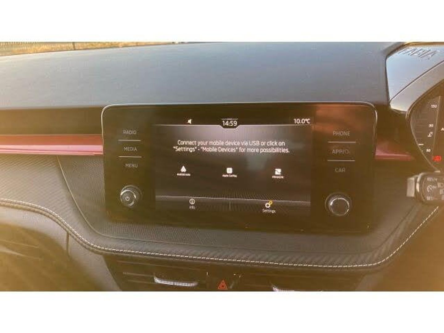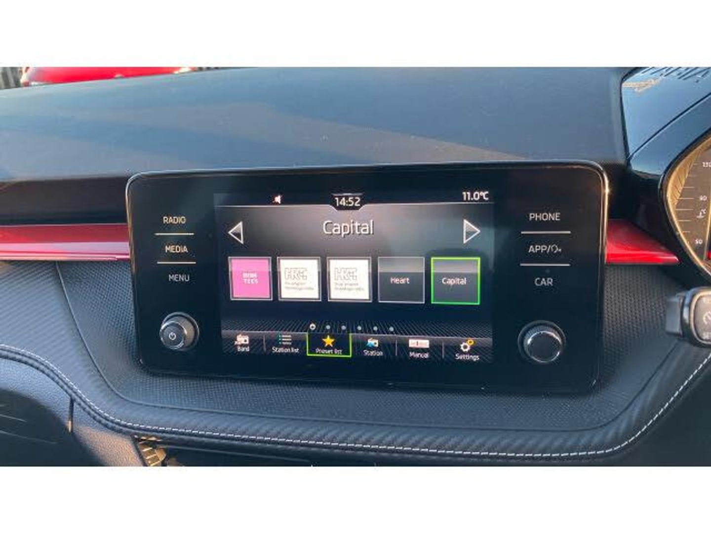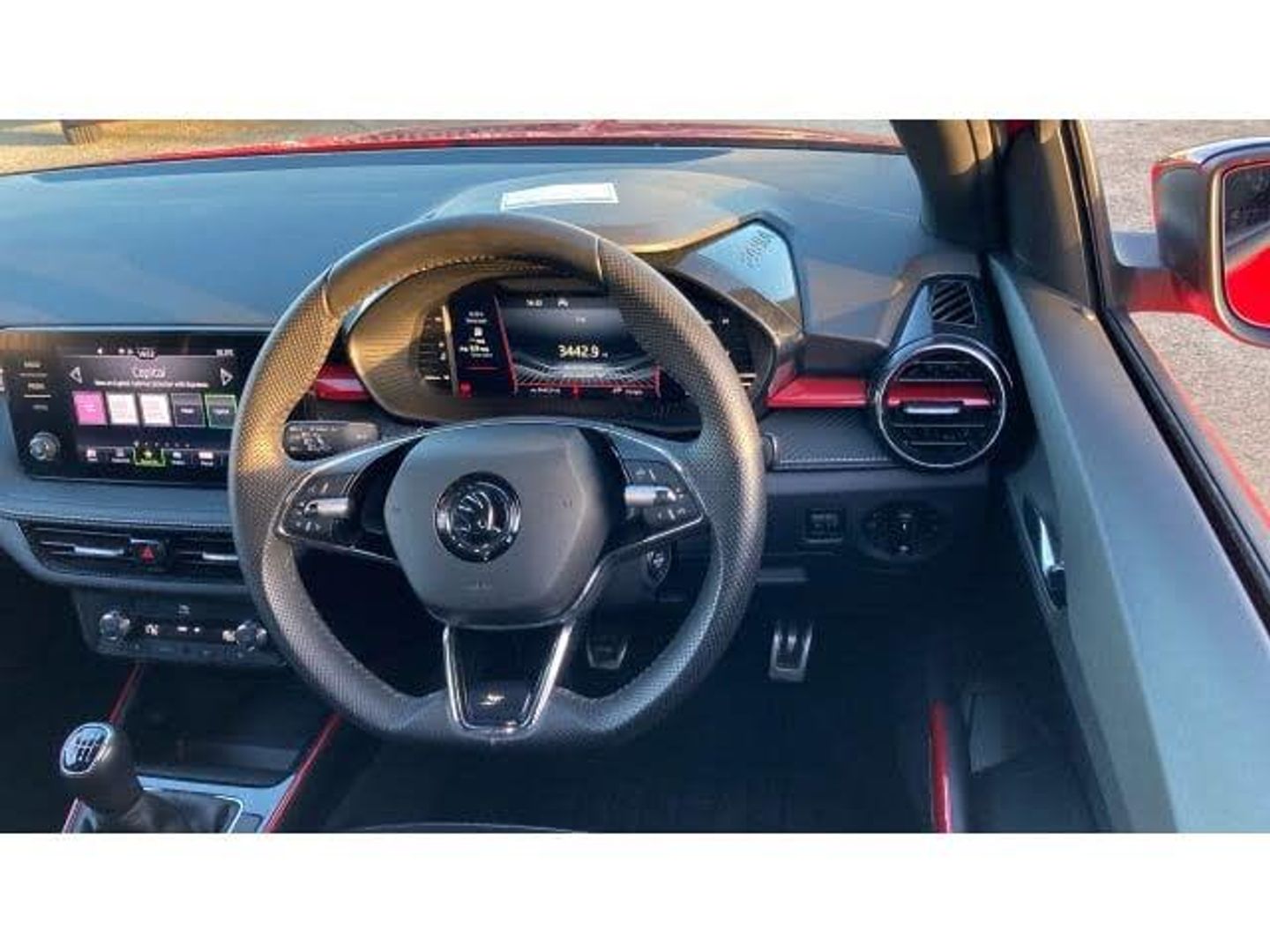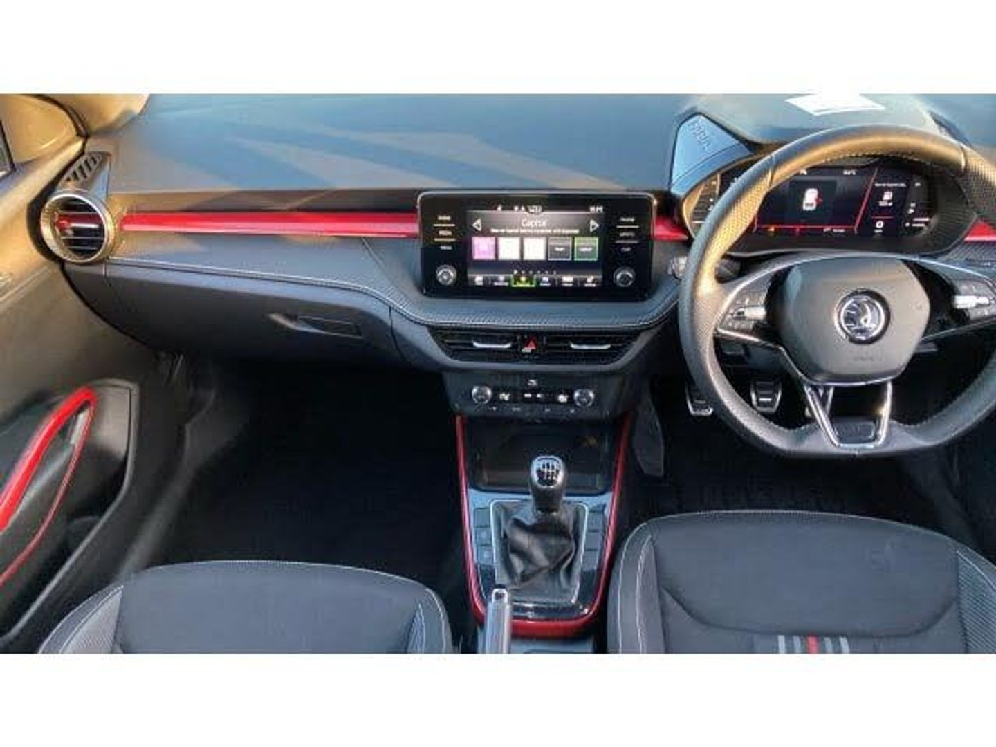 Air Conditioning, Climate Control, Metallic Paint, Satellite Navigation, Alloy Wheels, DAB Radio, Bluetooth, Parking Sensors, Stop Start, Manufacturer Approved, Diamond Cut Alloy Wheels, Apple-Android Play, Auto Lights, Xenon Head Lights& Rain Sensors, Textile floor mats, Privacy glass, Front and rear electric windows, Front window wiper intermittent control, Rear window wiper with washing nozzles, Electromechanical power steering, ESC including ABS, MSR, ASR, EDS, HBA and XDS, FRONT ASSIST (AEB City and AEB Inter Urban), Bluetooth connection, Multifunction trip computer in black and white, Driver alert system - DAS, Service interval indicator, Exterior temperature gauge, Auto dimming rear view mirror, Electrically adjustable and heated door mirrors, Door mirror integrated indicators, Red metallic upper decorative trim, Carbon effect lower decorative trim with white stitching, Carbon effect door and side trim panels, Auxiliary socket for external MP3 player