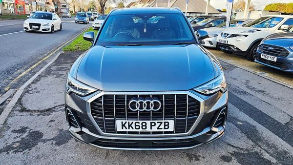 SPEC TO INCLUDE 2 X KEYS, REMOTE CENTRAL LOCKING, ELECTRIC WINDOWS, ELECTRIC MIRRORS, HEATED MIRRORS, MULTI FUNCTION STEERING WHEEL, CRUISE CONTROL, VOICE RECOGNITION, VIRTUAL COCKPIT WITH MULTIPLE VIEWS, DRIVER ASSIST, LANE ASSIST, SPEED WARNING, ANTI-PRESENCE, SIDE ASISST, XTRA WIDE MEDIA SCREEN, APPLE CAR PLAY, ANDROID AUTO, BLUETOOTH, BLUETOOTH AUDIO, SATELLITE NAVIGATION, DAB RADIO, AUDI DRIVE SELECT, EFFICIENCY- COMFORT DYNAMIC-INDIVIDUAL, FRONT AND REAR PARKING SENSORS, DUAL CLIMATE CONTROL, AIR CONDITIONING, LEATHER EMBROSSED S-LINE SEATS, HEATED SEATS, ISOFIX SEATS, PANORAMIC ROOF WITH OPENING FRONT SECTION, PRIVACY GLASS, INTERIOR AMBIENT LIGHTING, 12 V POWER PORT, CUPHOLDERS, LARGE BOOT, POWER TAILGATE, ALLOY WHEELS, PART EXCHANGE WELCOME AND WARRANTY INCLUDED, FINANCE AVAILBLE This 2019 Audi Q3 2.0 TDI 35 S line SUV with 91827 miles on the clock is a Euro 6 (s/s) Diesel vehicle that's ULEZ compliant and comes with an MOT that's set to expire on 27/11/2026. With 5 doors and 5 seats, this SUV is spacious and practical for families or those who enjoy outdoor adventures. The 150 ps engine delivers a powerful and smooth drive, and the S Tronic transmission adds to the overall driving experience. As an SUV, it offers a comfortable and commanding driving position, and the sleek design exudes sophistication. Whether you're navigating city streets or exploring the countryside, this Audi Q3 is ready to take you on your next journey.