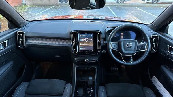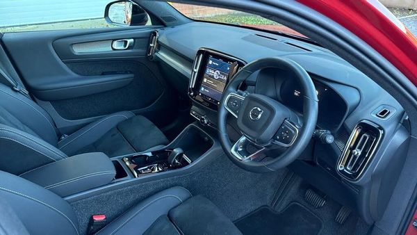 Sculpted gear shift, Charcoal headlining, Door mirror covers. high-gloss black, Cutting Edge aluminium decor, Connect Suede textile/Microtech upholstery, Tailored sport steering wheel. Charcoal, 7-speed Dual Clutch automatic, Two-zone climate system, Afterrun parking climate, Passenger airbag cut-off switch, Dual-stage airbags, Knee airbag. driver side, Charcoal interior inserts, Roof top. colour coordinated, Road Sign Information, Lane Keeping Aid and Lane Departure Warning, Front grille with high-gloss black insert, Heated grill emblem, LED headlights, Trailer lamp control, Fog lamps, 12.3-inch driver display, Google Assistant. Google Maps and Google Play Store, Cruise control, Intelligent Speed Assist (ISA), Volvo Cars App remote functions, Digital Audio Broadcasting (DAB+), High Performance audio system, Power retractable door mirrors, Wireless phone charging, Automatic door locking, Remote key, Small storage. front, Double locking, BLIS? and Cross Traffic Alert, Alarm, Power child safety lock, Power tailgate, Keyless entry with hands-free power tailgate, Air purifier and remote cabin pre-cleaning, Folding bag hook, Digital owners manual, Power driver seat with memory, Adjustable passenger seat, Heated front seats, Heated rear seats, Fixed rear head restraints, 5 seats, Mechanical release second seat row, Manual cushion extensions. driver and passenger, Power 4-way lumbar support, Sport textile interior cabin floor mats. Charcoal, Protection net, Foldable load floor with cargo divider and grocery bag, Rear centre armrest, Illuminated vanity mirrors, Interior illumination. high level, Power outlet. load compartment, First-aid kit, Auto-dimmed rear view mirrors, Front centre armrest, Glossy black tunnel console, Chassis, Hill Start Assist, Tyre pressure monitoring, Oncoming Lane Mitigation, Rear Collision Warning, Hill Descent Control, Slippery road alert, Emergency brake light, Heated steering wheel, Adaptive power steering, 19? 5-Y spoke matt graphite diamond cut, Temporary mobility kit, Lockable wheel bolts, Hidden tail pipes, Heated windscreen, Body-coloured door handles with ground lighting, High-gloss black side window trim, Roof rails. glossy black, Warning triangle, Volvo tread plates. aluminium, Tempered side and rear windows, Rain sensor, Park assist. rear and front, Ticket holder, Park assist camera. rear, Alcohol lock software (not available in the UK), Protective cap kit. Matt Tech Grey, Apple CarPlay, Comfort front seats, 9-inch centre display, Whiplash injury protection, Inflatable Curtain, Side impact protection, ISOFIX mounting points. rear seat, Steering wheel remote control, Humidity sensor, Bluetooth® connection, Safety belts