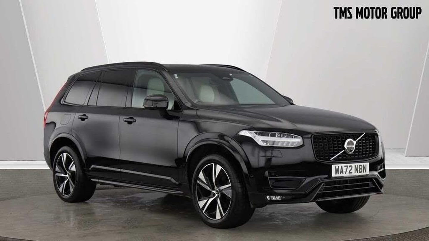 Onyx Black Metallic Paint, Nappa leather/Perforated upholstery, Panoramic roof, Pilot Assist, Harman Kardon, BLIS?, 20? 5-Spoke Black Diamond Cut, 360° camera, Apple CarPlay, Reserve online for £100, Personalised walkaround video available on request, Call Leicester on 01162758800, Orrefors® Crystal Gear Lever (automatic only), Charcoal headlining, Metal Mesh aluminium decor, Nappa leather/Perforated nappa leather upholstery, Tailored sport steering wheel. Charcoal, Contour front seats, 8-speed Automatic transmission. AWD, Pedals, Third row air conditioning, 4-Zone Electronic Climate Control, Afterrun parking climate, Passenger Airbag Cut Off Switch, Dual Stage Driver and Passenger Airbags, Driver Knee Airbag, Panoramic roof, Road Sign Information, Driver Alert Control with Lane Keeping Aid, Front grille with high-gloss black insert, Heated grill emblem, Full-LED headlights, Headlight Cleaning System, Rear fog lights switched off when trailer fog lights are running, Front LED Foglights, 12-inch driver display, Google Assistant. Google Maps and Google Play Store - included for 4 years, Pilot Assist (up to 80mph) Adaptive Cruise Control with Distance Alert & Queue Assist, Pilot Assist, Adjustable Speed Limiter, Volvo Cars App remote functions - included for 4 years, Fresh Air Subwoofer, DAB (Digital Audio Broadcasting) Radio, Premium Sound by Harman Kardon, Autofolding Heated Power Door Mirrors, Power operated passenger seat with memory function, Wireless/Inductive Mobile Phone Charging, Automatic door locking, Remote key, Door mirror covers. Black Stone, Double locking, Tinted rear windows, BLIS? and Cross Traffic Alert, Anti-theft Alarm including Immobiliser. Volume Sensor and Level Sensor, Power Child Locks, Power tailgate, Keyless Drive (includes Keyless Entry and Keyless Start), CleanZone with air purifier, Digital owners manual, Textile mats. third-row, Tailored dashboard and door top panels, Power Driver's Seat with Memory, Power Passenger Seat, Heated front seats, Heated Rear Seats - Outer Positions, Power folding outer rear head restraints. second row, 7 seats, Mechanical release second seat row, 4-Way Lumbar Support, Exclusive textile mats. Charcoal, Load Protection Net, Flexible Load Floor with Grocery Bag Holder, Rear centre armrest, Illuminated Vanity Mirrors, Rear Footwell and Side Step Illumination, 12v Socket - Cargo Area, Load cover. semi-automatic, Integrated Sun Curtain - Rear Doors, Automatically dimmed inner and outer rear view mirrors, Hidden storage compartment, Power cushion extension. driver, Chassis, Hill Start Assist, Indirect Tyre Pressure Monitoring System (iTPMS), Oncoming Lane Mitigation, Rear Collision Warning and Mitigation Support, Hill Descent Control, Slippery road alert, EBL. Flashing Brake Light and Hazard Warning, Heated Steering Wheel, Adaptive power steering, 20? 5-Spoke Black Diamond Cut, Temporary spare wheel, Locking Wheel Nuts, Heated Front Windscreen, Washer Nozzles, Body-coloured door handles with ground lighting, Glossy black front decor elements, Cargo opening metal scuff plate, Illuminated Front Tread Plates, Glossy Black Window Trim, Roof Rails - Integrated. High Gloss Black, All-wheel Drive (AWD), Tempered side windows, Park assist. front. rear and sides, Ticket holder, 360° camera, Protective cap kit. Matt Tech Grey, Apple CarPlay, 9-inch centre display, Whiplash injury protection system, IC (Inflatable Curtains) - Full Length, Side impact protection, ISOFIX Attachment (Outer Rear Seats), Safety belts, Rain Sensor - Automatic Windscreen Wiper Activation, Steering Wheel Remote Infotainment Control, Humidity sensor, Start/Stop technology, Bluetooth® Handsfree System