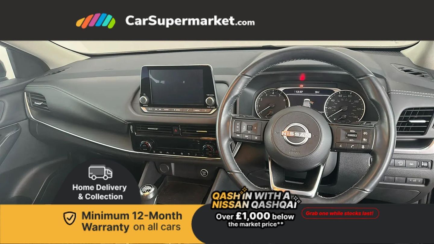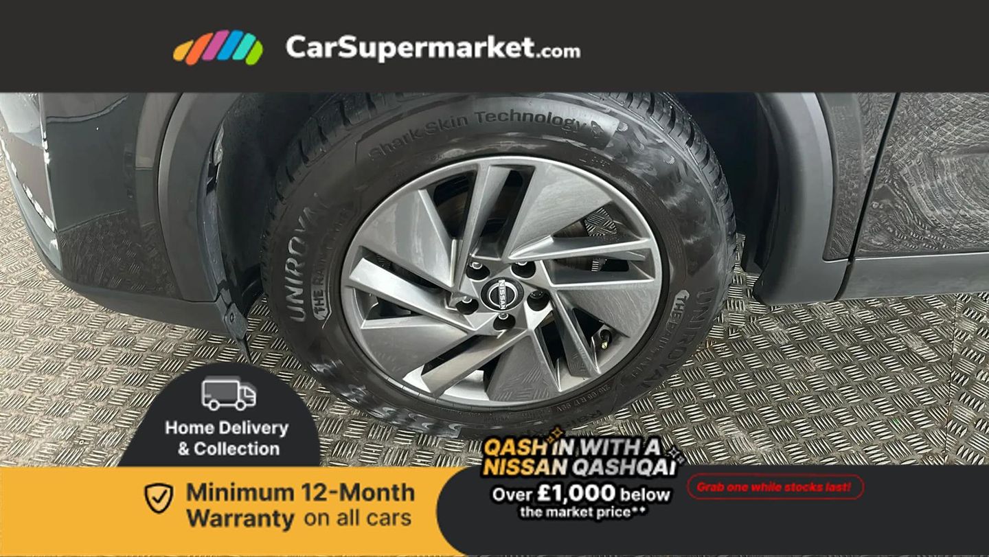 7" High definition full colour TFT screen combimeter,Android auto/Apple CarPlay (Wired),Blind spot warning,Drive modes (sport, normal, eco),Electric speed sensitive power steering,Emergency and breakdown call,Idle stop/start system,Intelligent Cruise control (ICC),Intelligent driver alert system,Intelligent forward collision warning,Intelligent lane intervention,Lane departure prevention,Lane departure warning system,Maximum speed limiter,Nissan connect 8" touchscreen infotainment system,Push button starter,Rear cross traffic alert,Rear parking sensors,Rear view camera,Traffic sign recognition with legal speed adjustment,Trip computer,6 speakers,AM/FM audio system with DAB,Bluetooth audio streaming,Front USB connections (Type-A and Type-C),Auto dimming rear view mirror,Auto rear wiper when reversing,Automatic hazard signal with emergency stop signal,Body colour mirror caps,Body coloured door handles,Bodyside mouldings,Chrome side window finisher,Door handle with button,Electric auto folding door mirrors,Electrically adjustable and heated door mirrors with LED turn indicator,Follow me home headlights,High beam assist,Intelligent auto headlights,LED daytime running lights,LED Headlights,LED rear lights,One touch front and rear electric windows with remote opening and closing,Partially body coloured bumpers,Rear reversing light (bulb lighting),Rear roof spoiler,Rear side wing doors,Shark fin antenna,Splash free rain sensing wipers,Three blink turn signal,12v power socket in dashboard and luggage,2x Rear coat hooks,3 bench rear seats in 2nd row,3 rear headrests,4 folding assist grip,6-way manually adjustable driver's seat,60/40 split folding rear seat bench,Centre console storage tray,Chrome interior door handles,Cloth monoform upholstery,Driver and front passenger sunvisors with illuminated vanity mirrors,Driver seat back pocket,Dual zone automatic climate control with pollen filter,Electrically adjustable lumbar support for driver,Front and rear door storage,Front centre console and armrest,Front cupholders x 2,Front door with bottle holders,Glovebox with light,Hard trunk cover,Height adjustable driver's seat,Height adjustable front headrests,Height adjustable passenger seat,Leather shift knob,Leather steering wheel,Luggage space lighting,Manually adjustable passenger (slide recline + lifter),Multifunction steering wheel,Passenger seat back pocket,Rear armrest with 2 cupholders,Rear door bottle holders,Single front passenger seat,Steering wheel switches,Sunglasses holder,Tilt/telescopic adjustable steering wheel,Two rear isofix child seat anchorage points with top tether,3x3 point rear seatbelt pretensioners + load limiters,ABS with EBD and brake assist,Active brake limited slip,Auto hold function,Child locks on rear doors,Curtain and front side, far side airbags,Driver and passenger airbags,Driver, passenger and 2nd row rear seat belt reminder,Electronic parking brake,Front seatbelt pretensioners + load limiters,Height adjustable front seatbelts,Hill start assist,Intelligent blind spot intervention,Intelligent front emergency braking with pedestrian, cyclist recognition and junction assist,Intelligent rear automatic braking,Tyre pressure monitoring system,Vehicle dynamic control,Capless fuel filler,Engine immobiliser,Intelligent Key,Remote central door locking with deadlocking,Thatcham Cat.1 alarm,Interior instrumental panel A finisher,17" Alloy wheels,Tyre puncture repair kit