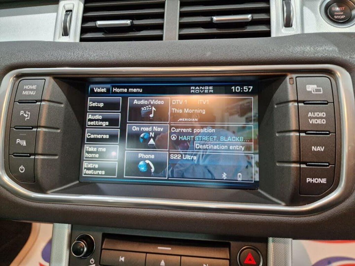 20in Alloy Sport Style 7 - Chrome Shadow, Contrast painted roof with matching spoiler, Glass - Privacy - Rear of B Post, Roof - Fixed Panoramic, Auto-Dimming Interior Mirror, Tailgate - Powered Electrical Tailgate, LUX Pack, Dual View Touch-Screen Display - includes WhiteFire headphones x1, Audio System - 825W Meridian Surround Sound System with radio and single slot CD - 16 speakers, Digital/Analogue TV, Santorini Black, Blind spot monitoring, Park Assist, Surround Camera System - 5 Cameras, 20in Alloy Sport Style 6 - Sparkle Silver, 5in TFT Driver Information Centre, 8in High Resolution Touch Screen, ABS - Anti Lock Braking System, Adaptive Dynamics, Airbags - Driver Knee, Airbags - Full Size Driver, Airbags - Full Size Passenger, Airbags - full length curtain, Alarm System - Volumetric, Armrest - Rear Centre with Storage Compartment and 2 Cupholders, Audio System - 380 Watt Meridian Sound System with Radio and Single Slot CD, Audio System - DAB, Audio system - Auxillary Socket with MP3 Compatibility, Automatic Headlights, Auxiliary Heater - Electrical Positive Temperature Coefficient, Auxillary Power Sockets - front-rear and load space, Bluetooth Telephone Connectivity, Carpet Mat Set - Front and Rear, Climate Control - Automatic with Air Filtration, Cruise Control, Cupholders x2, Door Mirrors - Electrically Adjustable - Heated and Power Folding with Memory Function, EBA - Emergency Brake Assist, EPAS - Electronic Power Assisted Steering, Electric drivers and passenger seat adjustment, Four electric windows with one touch opening, Front Fog Lights, HDC - Hill Descent Control, HDD Premium Navigation with Touch Screen, Headlight Power Wash, Heated Front Seats, ISOFIX Child Seat Anchor Points, Illuminated tread plates, Interior Mood Lighting, Land Rover - Tyre Repair System, Leather Steering Wheel, Locking Wheel Nuts, Lumbar Support, Memory and electric passengers recline, Parking Aid - Front, Parking Aid - Rear, Parking Aid - Rear View Camera, RSC - Roll Stability Control, Rain Sensing Windscreen Wipers, Remote Central Locking, Seats - 3 Seat Bench in Rear, Seats - 60/40 Split, Seats - Rear Centre Head Restraint, Steering Column - Manual For Height and Reach Adjustment, Steering Wheel Mounted Audio Controls, TMC - Dynamic route guidance, Tech Pack, Terrain Response, Textured aluminium centre console finisher and textured aluminium IP finisher, USB Connectivity, Voice Control - Say What You See, Windows - Heated Rear Windscreen, Windscreen - Heated, Windscreen Washer Jets - Heated, Xenon Headlamps with LED Signature