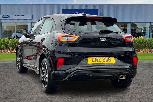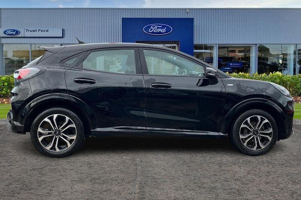 Driver impairment monitor, Emergency call service, Ford easy fuel, Full digital 12.3 instrument cluster, Lane keeping aid with lane departure warning, Power assist steering, Power start button, Rear parking sensor, Selectable drive modes(Normal, Eco, Sport, Slippery and Trail), Speed sign recognition, Automatic headlights with auto high beam, Automatic rain sensing wipers, LED rear lamps, Power foldable heated door mirrors with puddle lamps, Projector headlamps with LED day time running lights and front fog lamps, Quickclear heated windscreen, Rear side wing doors, Rear wiper, ST-Line body styling kit with unique grille, Third brake light, 3 seat bench in 2nd row, Centre console with armrest and stowage, Ford megabox extended bootspace, Front and rear head restraints, Front floor mats, Manual 2 way passenger seat adjustment, Manual 4 way driver seat adjust with lumbar adjustment, Single front passenger seat, ST- Line cloth trim with red stitching, ST-Line flat bottomed sensico leather steering wheel with leather handbrake and aluminium gear knob, 3 rear seatbelts, Child safety lock, Electronic stability control (ESC) and hill start assist, Pedestrian/cyclist detection & post-collision braking, Pre collision assist system, Tyre pressure monitoring system (TPMS)