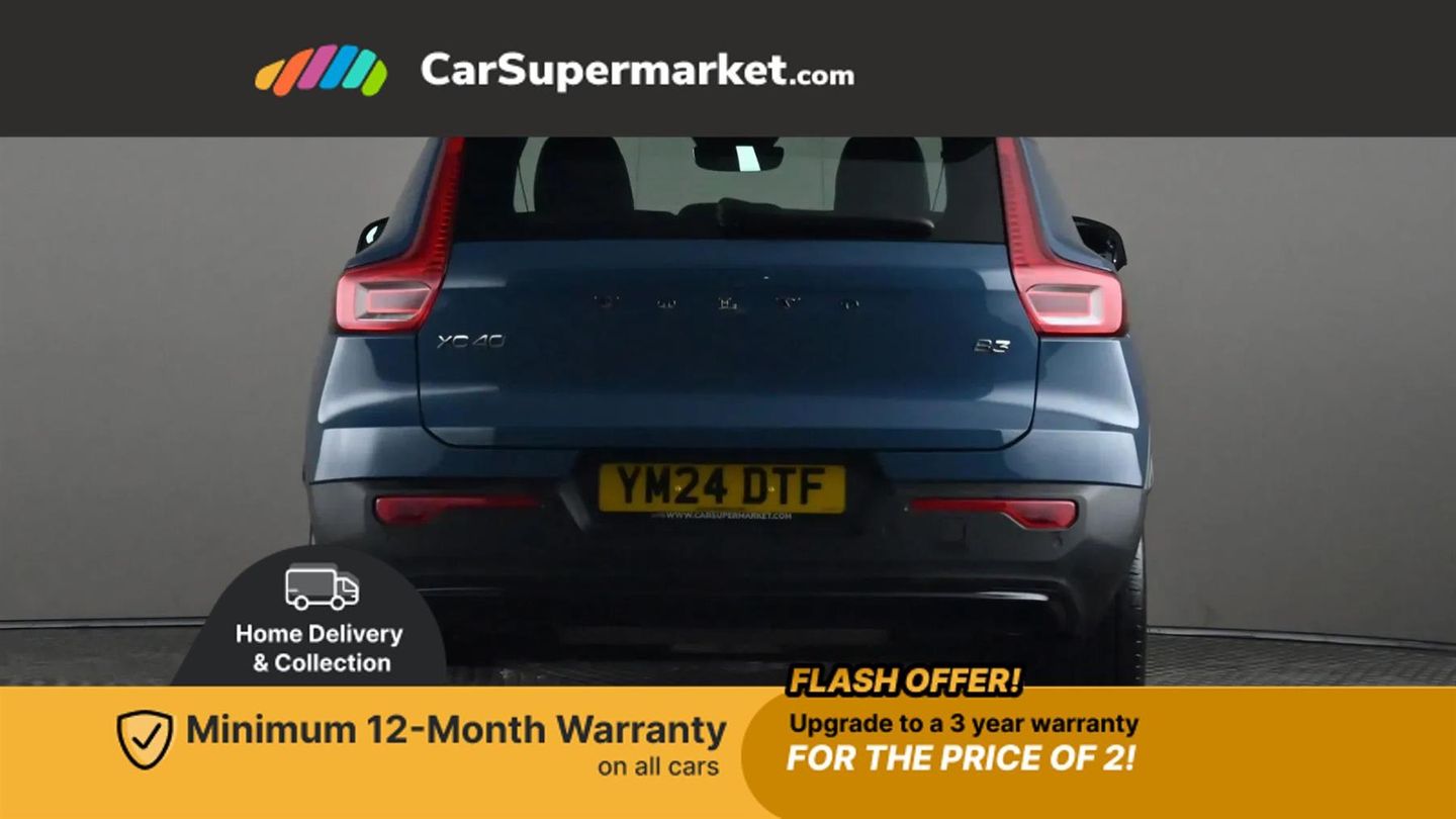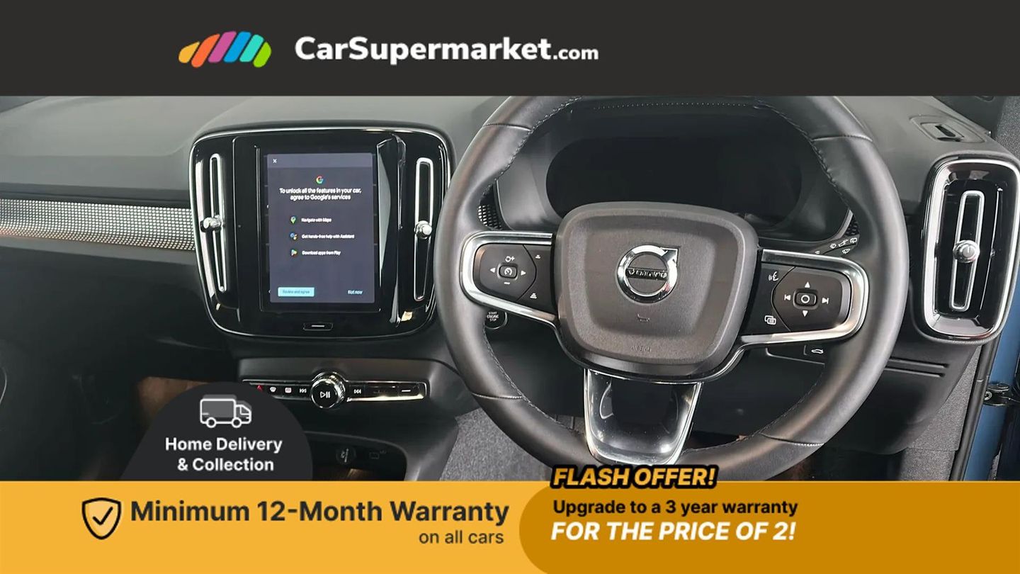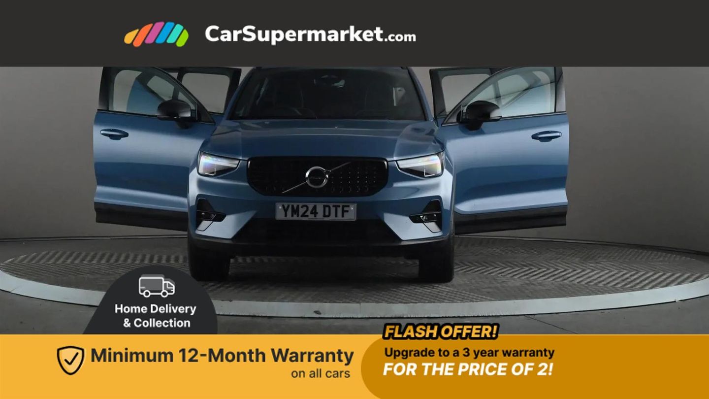 12.3" Progressive Driver Display,9" centre console portrait touch screen,Adjustable steering wheel force,Apple carplay (wired),Bluetooth handsfree system,Cruise control,Driver alert control,Driver awareness - Blind spot information system with steer assist, cross traffic alert with autobrake and rear collision warning and mitigation,E-call,Front park assist,Google automotive services - Enabled entertainment apps, navigation with google maps, voice recognition with google assistant,Hands free power tailgate,Intelligent speed assistance,Lane keeping aid,Oncoming Lane Mitigation,Rear park assist,Rear park assist camera,Speed sensitive steering,Volvo cars services with app - Driving journal, emergency and breakdown call, engine remote start, remote door locking/unlocking and vehicle dashboard,Wireless/Inductive Mobile Phone Charging,Automatic transmission with start/stop and manual change functions,Dynamic chassis,DAB Digital radio,High performance sound, 8 speakers/250W, 2 front type C and 2 rear type C USB,Steering wheel mounted remote controls,Adaptive brake lights with high level LED brake lights,Auto dimming feature for exterior door mirrors,Auto dimming interior mirror,Automatic headlamp levelling,Automatic LED Headlights + Active high beam incorporating daytime running lights,Front aluminium tread plates,Front and rear electric windows,High gloss black front and rear skid plate,High gloss black front bumper deco,High gloss black mesh front grille with high gloss black surround,High gloss black window trim,Home safe and approach lighting,Integrated roof rails in high gloss black,LED front fog lights,Puddle lights,Rain sensor with automatic windscreen wiper activation,Rear side wing doors,Rear wiper,Roof antenna,Roof spoiler,Visible VIN plate,12V socket in front tunnel console and luggage compartment,2-Zone electronic climate control with CleanZone air quality system and pollen filter,3 seat bench in 2nd row,3 Spoke tailored steering wheel with chrome trim,60/40 versatile split folding rear seat,A-pillar parking ticket holder,Centre console cupholders and storage,Charcoal headlining,Connect textile/microtech upholstery,Flexible load floor and grocery bag holder,Front cabin courtesy lights,Front door pocket, front cupholder, ambient front door, rear reading, rear courtesy, instrument panel and tailgate lighting,Front footwell illumination,Front headrests,Front reading lights,Front seat cushion extensions,Front side step illumination (under door),Glovebox bag hook,Heated front seats,Height adjustable passenger seat,Height/reach adjustable steering column,High gloss centre tunnel deco,Illuminated glovebox,Illuminated luggage compartment,Illuminated vanity mirrors + ticket holder,Integrated waste bin,Isofix attachments on outer rear seats,Load cover,Load protection net,Multi directional lumbar support for driver and passenger seat,Power driver seat with memory + exterior mirrors memory,Rear armrest with cupholders,Rear headrests,Single front passenger seat,Underfloor cargo storage,Climate pack without heated front seats - XC40,3x3 point rear seatbelts,City safety with steering support with Pedestrian + cyclist + front collision warning with full auto brake and rear auto brake,Driver and passenger airbags,Drivers knee airbag,Electronic parking brake with auto hold,First aid kit,Front and outer rear seatbelt reminder and pretensioners,Front seats SIPS airbags,Hill descent control,Hill start assist,Inflatable curtain,Passenger airbag cut-off device,Power child locks on rear doors,Road sign information display,Run off Road Protection,SIPS (Side Impact Protection System),Slippery road and hazard light alert,Stability and Traction Control with Spin control, Engine Drag Control and Corner Traction Control,Tyre pressure monitoring system,Vehicle deceleration control with Anti-lock Brake System, Electronic Brake Distribution and Emergency Brake Assist,Warning triangle,WHIPS whiplash protection system - front,2 x Key integrated remote control central locking including with deadlocking system and auto open/close windows,Anti-theft alarm including immobiliser/volume sensor + level sensor,Keyless drive includes keyless entry and keyless start,Locking wheel nuts,Connect Textile-Microtech - Charcoal,Fjord Blue,19in Alloy Wheels - 5 Y Spoke - Diamond Cut - Matt Graphite