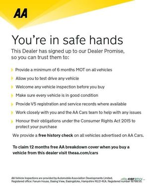 Black interior.We aim to have all of our cars prepped and ready to drive away same day. 3 Months engine and gearbox cover included. (Max 3k miles). 12 Months free AA breakdown cover included on cars up to 12 years old. T&C Apply 5 day drive away insurance available. Fees apply. Checked, Prepped and Car Envy Approved. Call today to avoid disappointment.