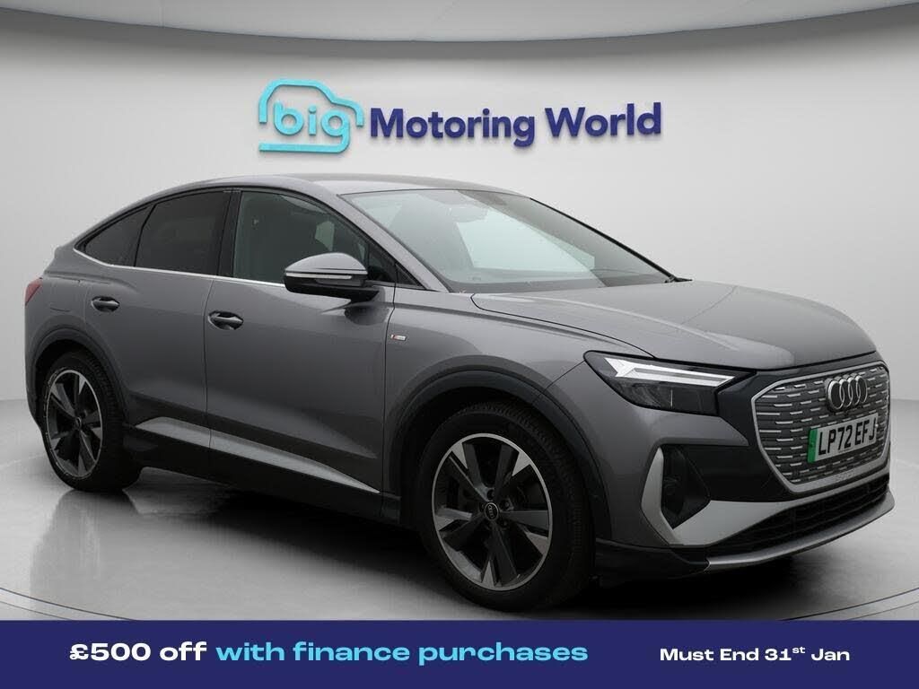 £500 towards your finance depo-Our Audi Q4 e-tron is finished in Grey. Specification includes a range of fantastic features including £500 towards your finance deposit, Digital Cockpit, Privacy Glass, Heated Seats, Virtual Cockpit, Rear View Camera, Bluetooth, Audi Connect, 3 Zone Climate, Keyless Go Specification information is supplied by CAPHPI and may vary to the actual car. This data does not form any part of a buying contact. Please check specification prior to purchase in-store. The MOT is valid until December 2026, visit bigmotoringworld.co.uk for more photos, a 360 tour, service history and a free HPI report.Were BIG on peace of mind and this Grey Audi Q4 e-tron has completed our comprehensive 200 point inspection and passed all checks. Its ready for you to drive away with immediate collection in-store. We include a 90-day warranty as standard plus an option to extend for up to 3 years.Reserve this car exclusively for you, safely and securely at bigmotoringworld.co.uk, with a fully refundable £99 deposit. Test drive before you buy, with no commitment, no hassle and a completely haggle free experience. Still searching and want to see thousands more cars? We are BIG on choice with over 8000 cars to choose from.Visit our award winning web site bigmotoringworld.co.uk.Were Big Motoring World and were BIG on what matters to you.
