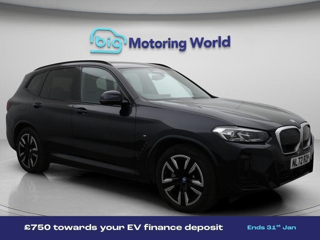 Sun Protection Pack,19'' Alloy-Our BMW iX3 is finished in Black. Specification includes a range of fantastic features including Sun Protection Pack, 19'' Alloy wheels, Leather Seats, Apple CarPlay, Adaptive Cruise Control, Electric Seats, Harman Kardon Speakers, Electric Panoramic Roof, M Sport Bodykit, Android Auto Specification information is supplied by CAPHPI and may vary to the actual car. This data does not form any part of a buying contact. Please check specification prior to purchase in-store. The MOT is valid until September 2026, visit bigmotoringworld.co.uk for more photos, a 360 tour, service history and a free HPI report.Were BIG on peace of mind and this Black BMW iX3 has completed our comprehensive 200 point inspection and passed all checks. Its ready for you to drive away with immediate collection in-store. We include a 90-day warranty as standard plus an option to extend for up to 3 years.Reserve this car exclusively for you, safely and securely at bigmotoringworld.co.uk, with a fully refundable £99 deposit. Test drive before you buy, with no commitment, no hassle and a completely haggle free experience. Still searching and want to see thousands more cars? We are BIG on choice with over 8000 cars to choose from.Visit our award winning web site bigmotoringworld.co.uk.Were Big Motoring World and were BIG on what matters to you.