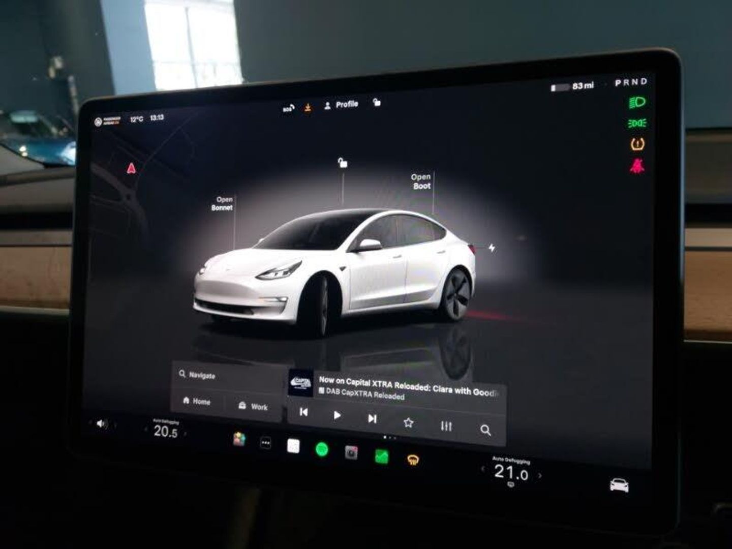 18" alloy wheels with aero covers, Adaptive cruise control, Heated Rear Seats, Heated steering wheel, LED daytime running lights, LED Headlights, Speed limiter, Steering wheel audio controls, 3 steering modes (Comfort, standard, sport), Acceleration modes (Chill, standard), Automatic blind spot camera, Autosteer, e-Call (emergency call), Electric assisted front and rear doors, Reversing camera, Voice control for media, navigation, climate control, contacts, app and settings, Type 2 connector (11Kw Max), Tesla mobile connector + domestic adapter (British 3-pin), Scheduled departure, Rear wheel drive, 88L front trunk, 11 kW AC onboard charger, DAB Digital radio, Audio system with 8 speakers and limited Immersive Sound, 15" Touchscreen, Tesla mobile app, LED Headlights, LED daytime running lights, Windscreen washer jets, 60/40 split folding rear seats, 2 zone climate control, Heated steering wheel, Heated rear seats, Heated front seats, Adjustable shoulder anchor height, ABS, 6 airbags - Driver, front passenger, curtain and side airbags, Brake disc wipe technology, Emergency boot release, Alarm