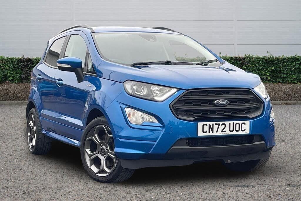 Allen Ford is proud to present this stunning Ford EcoSport St-Line 1 Owner Last Serviced 02/12/2025 MOT Until 15/09/2025 Boasting an MOT valid until September 2026 and having had only one owner, this 2022 Ford EcoSport T ST-Line presents a compelling proposition. Powered by a 1.0L Petrol Engine and meeting Euro 6 emissions standards, this ST-Line trim vehicle comes equipped with a range of desirable features. These include LED low beam headlights, automatic headlights for convenience, and rear parking sensors complemented by a rear view camera pack to assist with manoeuvring. Inside, you'll find electronic automatic temperature control for a comfortable cabin environment. The vehicle benefits from a partial service history, with its last service conducted on 2025-12-02 at 21125 miles, and is offered with a 3 month warranty for your peace of mind. This Ford EcoSport stands out with its impressive fuel economy, achieving a highlight of 46 mpg, which indicates it is more economical than many similar vehicles. Furthermore, its low CO2 emissions highlight also suggests a more environmentally conscious choice compared to other cars in its class. These factors, combined with its well maintained provenance and useful features, make this EcoSport a practical and appealing option for everyday driving. This vehicle includes a comprehensive 90-day warranty and 90-day roadside assistance, as well as having been through a thorough multi point inspection and will have been serviced and MOTd if required. As well as that we also, HPI checked every vehicle to give you full peace of mind. Get in touch today on 01926 319500 to find out more. Open Monday to Friday 8.30am to 6pm, Saturday 8.30am to 6pm and Sunday 10am to 4pm. Ask a member of our sales team for a personal video of this vehicle or ask about the range of tailored finance options that are available, and book in to arrange a viewing. Reserve online today and collect it safely at our dealership.