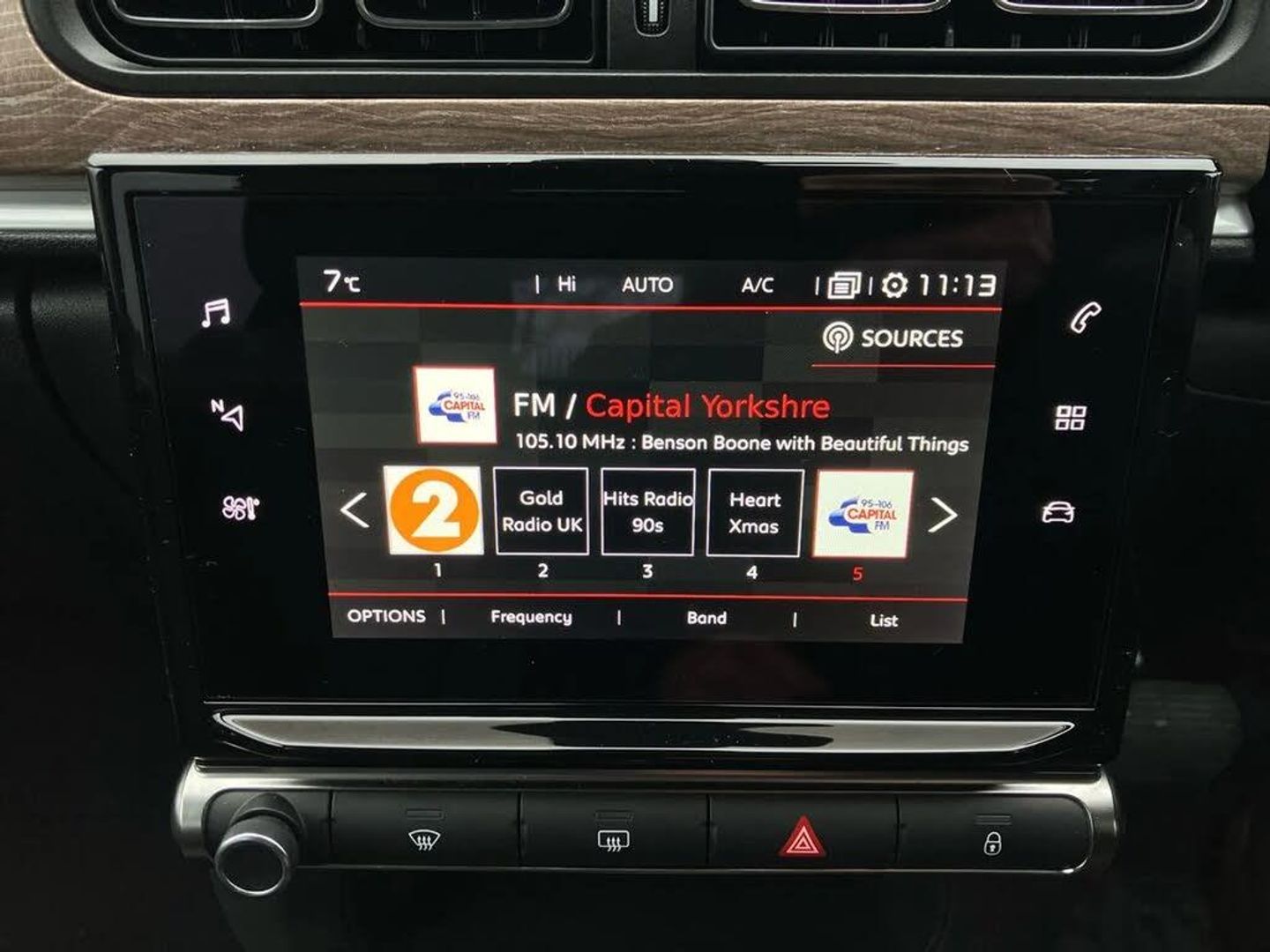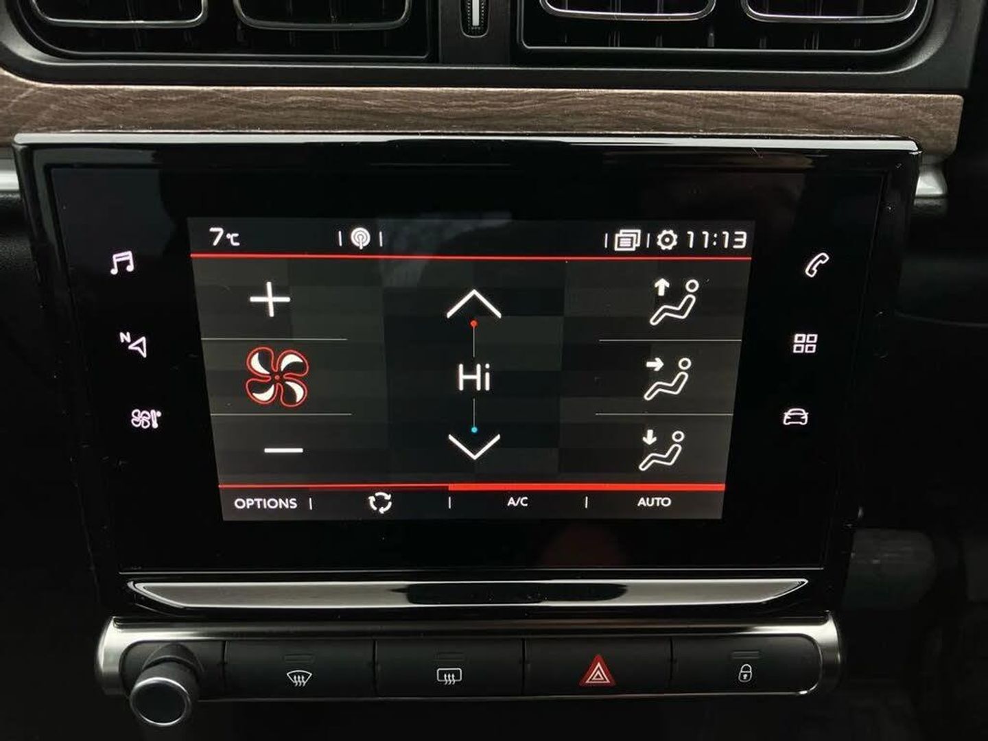 Citroen connect box emergency and assistance system,Citroen connected nav with DAB, 6 speakers, 7" captive touch screen, mirror screen includes apple carplay/android auto and bluetooth,Coffee Break Alert,Cruise control + speed limiter,eCall emergency call system,Exterior temperature display,Lane departure warning system,Multi function trip computer,Rear parking sensors,Reversing camera,Satin chrome surround instrument cluster with white LCD and analogue gauges,Variable assistance power steering,USB connection,3D rear light signature,Airbump on side door panel,Automatic activation of hazard warning lights,Body colour bumpers,Body colour door handles,Chrome decoration on front face, under chevrons and around daytime running lights,Citroen illuminated signature in LED headlights and LED daytime running lights,Dark tinted tailgate and rear side windows,Electrically adjustable door mirrors,Electrically folding door mirrors,Electrochrome auto dimming interior rear view mirror,Fog lights integrated into front bumper,Front sequential electric windows with one-touch open/close and anti-pinch system,Gloss black finish B pillar,Heated door mirrors,LED Headlights,LED third brake light,Rear sequential electric windows with one-touch open/close and anti-pinch system,Rear side wing doors,Rear windscreen wiper with intermittent mode linked to vehicle speed and automatic activation when reverse gear selected,Roof colour rear view mirror caps,1/3 to 2/3 split folding rear seat,12V socket,Automatic air conditioning,Boot light,Cloth/leather effect upholstery,Driver and passenger's sun visor with courtesy mirror,Driver's central armrest,Driver's seat height adjustment,Front lighting panel with map reading lights,Front seats adjustable with forward back slide and adjustable backrest,Height adjustable front head restraints,Height/reach adjust steering wheel,ISOFIX mounting on outer rear seats with top tether and labels indicating fixing points,Leather steering wheel with gloss black + satin chrome elements and audio/telephone controls,Leather trimmed gear lever for automatic gearbox with leather effect gaiter and overstitching lever position indicator,Map pockets in back of driver and front passenger seats,Parcel shelf,Row 2 - Three seats with individually adjustable head rests,Seatbelt unfastened on the move audible and visual alert for front and rear seats,Single front passenger seat,Storage space under touchscreen with rubber mat,Techwood ambience with advanced comfort seats,Three rear headrests,Upholstered armrest in front and rear doors,Safety pack 1 - C3,Safety pack 2 - C3,Visibility pack with automatic lights - C3,ABS with Electronic brakeforce distribution and Emergency braking assistance,Driver and front passenger seatbelts with pyrotechnic pretensioners and force limiters,Driver's airbag,Electric child locks,ESP with anti skid system,Front passenger airbag,Front passenger airbag deactivation,Front side airbags + front/rear curtain airbags,Hill start assist,Manual parking brake with leather handle and chrome finish button,Mono-tone horn,Outer rear seats with pretensioners and force limiters,Three rear 3-point seatbelts,Tyre pressure monitoring system,Anti theft alarm,Automatic door and boot locking when moving off with automatic unlocking in case of impact,Central locking with locked indicator and interior one touch lock button,Immobiliser,Remote control central locking with two plip keys,Technical wood effect dashboard with grey surround,17" Vector diamond cut alloy wheels,Space saver spare wheel