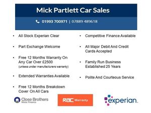 Buy your next car from Mick Partlett Car Sales Ltd. We are a family run independent business who have been established for 29 years. We also provide great deals on finance, Buy with confidence too, as every car has passed a pre-sales inspection in our Workshop.-12 MONTHS RAC WARRANTY-Service history, £35 annual road tax, remote central locking, electric windows, electric mirrors, air conditioning, 5 speed gearbox, stereo, cd, sunroof, voice command, city mode, auxiliary and usb ports, multifunction leather steering wheel. height adjustable drivers seat, isofix rear outer, 50/50 split rear seats, spare wheel.12 MONTHS RAC WARRANTY, 12 MONTHS RAC BREAKDOWN COVER. To arrange a test drive give the sales team a call. We located in WITNEY in OXFORDSHIRE. Finance Available.