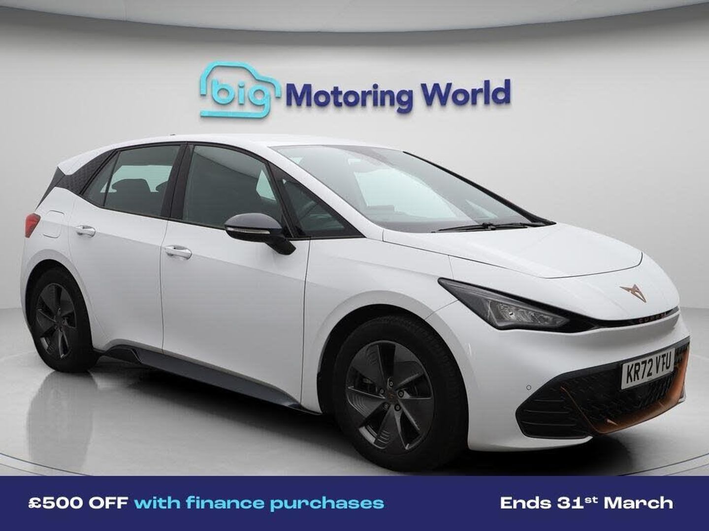 £500 towards your finance depo-Our CUPRA Born is finished in White. Specification includes a range of fantastic features including £500 towards your finance deposit, 18'' alloy wheels, Apple CarPlay, Lane Assist, Android Auto, Satellite Navigation, Rear View Camera, Heated Steering Wheel, Bluetooth, Parking Sensors Specification information is supplied by CAPHPI and may vary to the actual car. This data does not form any part of a buying contact. Please check specification prior to purchase in-store. The MOT is valid until December 2026, visit bigmotoringworld.co.uk for more photos, a 360 tour, service history and a free HPI report.Were BIG on peace of mind and this White CUPRA Born has completed our comprehensive 200 point inspection and passed all checks. Its ready for you to drive away with immediate collection in-store. We include a 90-day warranty as standard plus an option to extend for up to 3 years.Reserve this car exclusively for you, safely and securely at bigmotoringworld.co.uk, with a fully refundable £99 deposit. Test drive before you buy, with no commitment, no hassle and a completely haggle free experience. Still searching and want to see thousands more cars? We are BIG on choice with over 8000 cars to choose from.Visit our award winning web site bigmotoringworld.co.uk.Were Big Motoring World and were BIG on what matters to you.