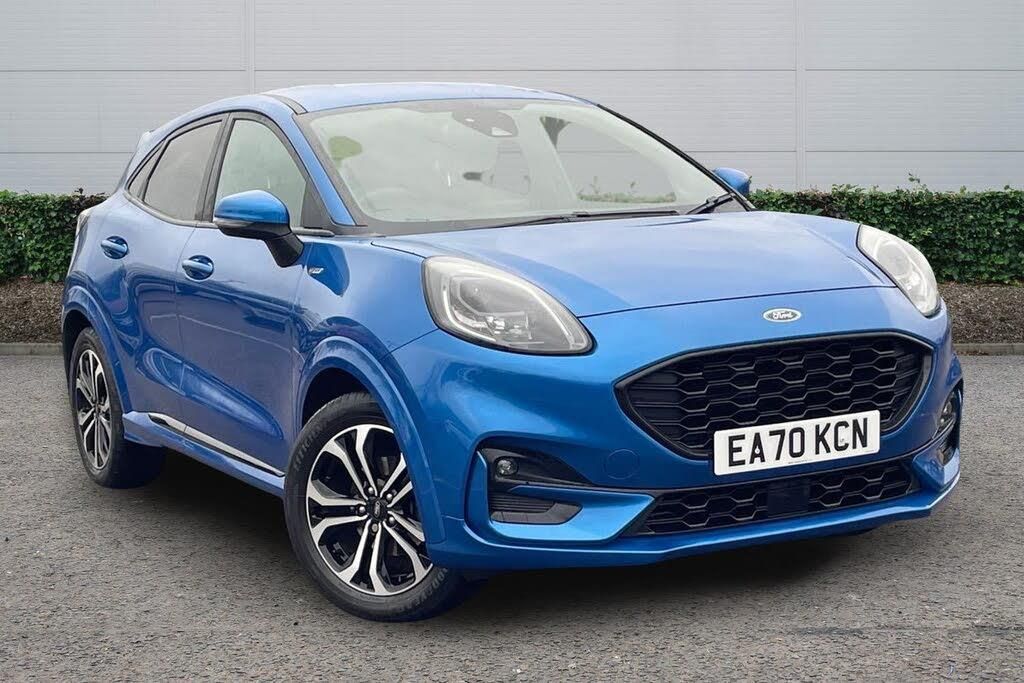 Inflation Kit, 17in Alloy Wheels - 5x2 Spoke - Black Machined Finish, ABS - Anti-lock Braking System, Acoustic Laminated Windscreen, Active Grille Shutter, Automatic Dimming Rear View Mirror, Automatic Headlights with Rain-Sensing Wipers and Auto High Beam, Centre Console with Armrest - Stowage, Courtesy Lights - Ambient LED Courtesy Lighting - Single Colour, Cruise Control - Lane Keeping Aid and Lane Departure Warning, Driver Seat Lumbar and Height Adjustment, Electric Windows - Front and Rear, Electronic Stability Control - ESC with Traction Control and Emergency Brake Assist - EBA, Emergency Brake Warning - Automatic Hazard Warning Lights, First Aid Kit Strap, Floor Mats - Front and Rear, Ford Easy Fuel System, Ford MegaBox Extended Bootspace, Ford Power Starter Button, Ford SYNC 3 Navigation, Front Bumper - Unique ST-Line Sport Design - Body Colour, Front Door Threshold Plates - ST-Line, Front Fog Lights with Cornering lights and LED Rear Lamps, Front Seats - Sports Style, Full Digital 12.3in Instrument Cluster, Gearshift Knob - Soft Feel with Red Stitching, Headliner - Deluxe, Instrument Panel - High Level, Large Rear Spoiler - Body Colour with Centre High Mounted Stop Light, Locking Wheel Nuts, Lower Bodyside Moulding - Body Colour, Manual Air Conditioning, Post Collision Braking, Power Steering, Power-Foldable Heated Door Mirrors with Puddle Lamps, Pre-Collision Assist with Autonomous Emergency Braking and Pedestrian-Cyclist Detection, Projector Headlamps with LED Daytime Running Lights, Puma Badge, Quickclear Heated Windscreen, Rear Bumper Body Colour - Diffuser, Rear Parking Sensors, Rear Seats - 2-Way Head Restraint Up-Down, Rear Seats - Second Row 60-40 Folding Seats, Remote Central-Double Locking, Restrain Device Pack, ST-Line Badge, ST-Line Body Styling Kit, ST-Lined Flat-Bottomed Leather Steering Wheel - Leather Handbrake, Selectable Driving Modes - Normal - Eco - Sport - Slippery and Trail, Speed Limiter, Sports Suspension, Thatcham Alarm, Trip-Fuel Computer, Tyre Inflation Kit, Tyre Pressure Monitoring System - TPMS, Wireless Charging