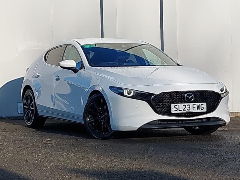 Pearlescent paint, 8.8" Colour centre touch screen display with Mazda Connect infotainment, Apple car play/Android Auto, Front and rear parking sensor with audible and visual warning, Heated front seats with 3 stage setting, Head up Display, Mazda Navigation System with european mapping, Mazda Radar Cruise Control, Mobile App interface, Reversing camera, Mazda Multimedia System with AM / FM / DAB radio with 8 speakers, LED indicator lights, Signature LED daytime running lights, Signature LED rear combination lights, Frameless auto dimming interior rear view mirror, Cloth upholstery, ISOFIX child seat anchorage points attached on outer rear seats, Paddle shift controls, 18" Grey alloy wheels