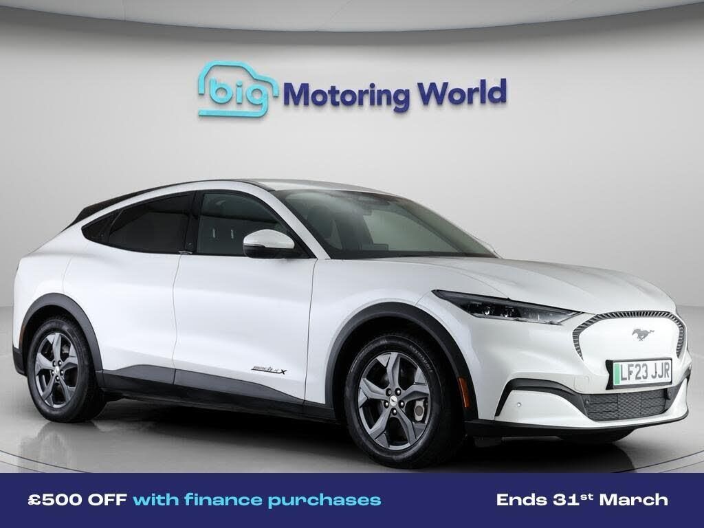 £500 towards your finance depo-Our Ford Mustang Mach-E comes with optional extras worth £1,150. Specification includes a range of fantastic features including £500 towards your finance deposit, 18'' alloy wheels, Leather Seats, Apple CarPlay, Adaptive Cruise Control, Lane Assist, Android Auto, Privacy Glass, Heated Seats, Heated Windscreen Specification information is supplied by CAPHPI and may vary to the actual car. This data does not form any part of a buying contact. Please check specification prior to purchase in-store. The MOT is valid until July 2026, visit bigmotoringworld.co.uk for more photos, a 360 tour, service history and a free HPI report.Were BIG on peace of mind and this White Ford Mustang Mach-E has completed our comprehensive 200 point inspection and passed all checks. Its ready for you to drive away with immediate collection in-store. We include a 90-day warranty as standard plus an option to extend for up to 3 years.Reserve this car exclusively for you, safely and securely at bigmotoringworld.co.uk, with a fully refundable £99 deposit. Test drive before you buy, with no commitment, no hassle and a completely haggle free experience. Still searching and want to see thousands more cars? We are BIG on choice with over 8000 cars to choose from.Visit our award winning web site bigmotoringworld.co.uk.Were Big Motoring World and were BIG on what matters to you.
