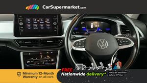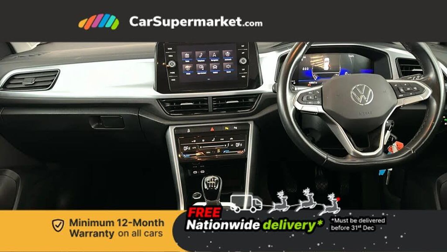Bluetooth mobile phone interface,Driver alert system with fatigue detection,Driver tips and journey analysis,Emergency call service,Lane keeping system Lane Assist,Modified key software - reduce switch off time for key status change to Long no motion,Online services,Park assist including front and rear parking sensors,Power assisted speed sensitive steering,Service interval indicator,Tailgate/trunk lid release from outside,Think blue trainer driver tips and journey analysis,Warning sound and light for front seatbelts unfastened,Wireless app connect,Battery regeneration during braking,Front shock absorption,Rear shock absorption chassis with increased ride height,Start/stop function with battery regeneration,DAB Digital radio,Diversity antenna for FM reception,Front and rear 6 speakers,Music playback - MP3, WMA and AAC files,Premium USB cable in choice of either Apple or Android smartphone compatibility,SD card slot,Simultaneous pairing of 2 compatible mobile devices,Title and cover art display,We Connect and We Connect Plus functionality,3rd brake light,Auto dimming interior rear view mirror,Automatic hazard lights activation under emergency braking,Automatic headlight control with LED separate daytime running lights with coming/leaving home function,Black roof rails,Body coloured bumpers and radiator grille with chrome trim and front fog lamps with chrome bezel,Body coloured exterior mirror housings and door handles,Extended roof spoiler,Exterior mirrors aspherical on driver side, convex on front passenger side,External USB type C socket and charging sockets,Front windscreen wiper with intermittent wipe and 4 position delay,Heated rear window,LED Headlights,LED rear combination lamps,LED rear number plate lights,LED tail lamp rear comination lamps,Power windows with comfort operation and circuit breaker,Rain sensor,Rear exhaust tailpipe,Rear fog light on one side and reversing lights on both sides,Rear side wing doors,Rear wash/wipe with intermittent wipe setting,Remote electrically foldable door mirrors, puddle lights and reverse activated passenger's door mirror,12V power socket in centre console,3 rear head restraints,3 seat bench in 2nd row,4 load lashing points in luggage compartment,Air care climatronic air conditoning system with active combination filter and 2-zone temperature control,Ambient lighting with mirror logo projection,Cloth upholstery,Door and side trim panel in cloth,Drawer under drivers seat,Driver/front passenger seat height adjustment,Front centre armrest,Front comfort sports seats,Front cupholders x 2,Front reading light,Instrument lighting, white adjustable panel illumination,Interior light delay,Isofix child seat preparation,Leather gearshift handle,Load-through provision with cup holder when folded down ('Unsplit rear seat bench, split folding backrest, with centre armrest),Luggage compartment lighting,Lumbar support for driver's and front passengers seat,Non-folding front passenger seat backrest,Single front passenger seat,Storage compartment in left and right luggage area,Storage compartment in rear doors,Storage compartments in driver and front passenger doors,Sunvisors with illuminated vanity mirrors,Variable boot floor, height adjustable and removable,Driver assistance pack without proactive passenger protection - T-Roc,3 point height adj front seatbelts + pretensioners,3 point seatbelts in outer rear with ECE label,ABS,Child locks on rear doors,Driver and front passenger airbag with front passenger airbag deactivation,Driver and front passenger safety-optimised head restraints,Drivers seatbelt reminder,Electronic parking brake,Electronic Stability Control (ESC) inc EDL (Electronic Differential Lock) and ASR (Traction Control),Front and rear passengers curtain airbag system including front side airbags,Front assist with city emergency braking and pedestrian monitoring,Front disc brakes,Front seat side impact airbags,Hill start assist,Predictive pedestrian protection,Rear disc brakes,Single tone horn,Tyre pressure loss indicator,Volkswagen roadside assistance,Alarm with interior protection,Anti-theft alarm system with interior monitoring, backup horn, and towing protection,Pewter matt decorative inserts for intrument panel, centre console and door panels at the front,Trims for alloy wheels