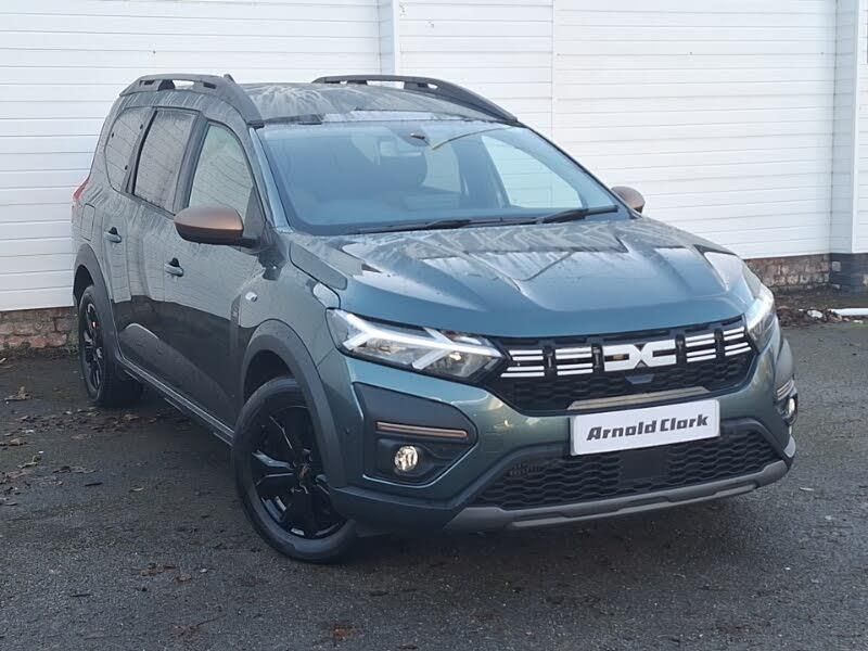 Android Auto, Apple CarPlay, Cruise control, LED daytime running lights, LED Headlights, Rear parking sensor, Speed limiter, Steering wheel audio controls, Voice control for telephone and radio, Stop/start system, Service interval indicator, Reversing camera, Rear parking sensors, One touch indicators, Front parking sensors, Exterior temperature display, Extended grip switch, Electric power assisted steering, Eco mode, e-Call (emergency call), Cruise control and speed limiter, Check control system, Blind spot warning, 3.5" TFT instrument panel with on-board computer, Exhaust particle filter, USB socket, USB connection for data transfer and charging, 8" MediaNav with DAB Radio, WIFI Smartphone replication, Bluetooth, 6 speakers with Apple Carplay/Android Auto and Extra map, Y-shaped LED lighting signature, Transversal emblem and white highlights on front air vent grid, Snorkel sticker with topographic pattern, Shiny black shark antenna, Rear wash/wipe, LED automatic daytime running lights, Lateral sticker with topographic pattern, Initial anti-corrosion treatment, High level third rear brake light, Heated rear window, Heated door mirrors, Headlights with LED low beam illumination, Front LED Indicator lights, Front fog lights, Auto lighting, Automatic wipers, Black longitudinal roof bars, Body coloured door handles, Body coloured front and rear bumpers, Chrome radiator grille, Copper brown "Stepway" marking on roof bar, Copper brown deco part on fog lamp area, Copper brown door mirrors, Dark glass, Under floor storage in luggage area, Steering wheel controls, Soft feel steering wheel, Sliding tray tables, Single front passenger seat, Satin chrome interior door handles, Satin chrome air vents, Isofix points for child seats in both outer rear seats, High central armrest with console storage, Height and depth manually adjustable steering wheel, Automatic air conditioning, Boot light, Copper Brown animation on air vents, Copper brown doors deco parts, Front and rear rubber mats with topographic pattern, Fabric upholstery, Elastic straps, 12V socket in front, 12V socket in rear of vehicle, 2 independently folding and removable 3rd row seats, 2x Rear coat hooks, 3 height adjustable rear headrests, 3 load hooks, Side airbags (thorax and curtains - front/rear), Hill Start Assist (HSA), Height adjustable front seatbelts, Front seatbelt pretensioners, Front passenger airbag deactivation, Emergency Brake Assist (EBA), Electronic parking brake, Driver and passenger side airbags, 3x3 point rear seatbelts, Anti-lock braking system (ABS), Automatic Emergency Braking System (AEBS), Child locks on rear doors, Door open visual and audible warning, Remote central locking, Keyless entry, Engine immobiliser, Automatic central locking, Alarm, Decopart on instrument panel and door with textile, 16" Black alloy wheels with copper brown dacia logo