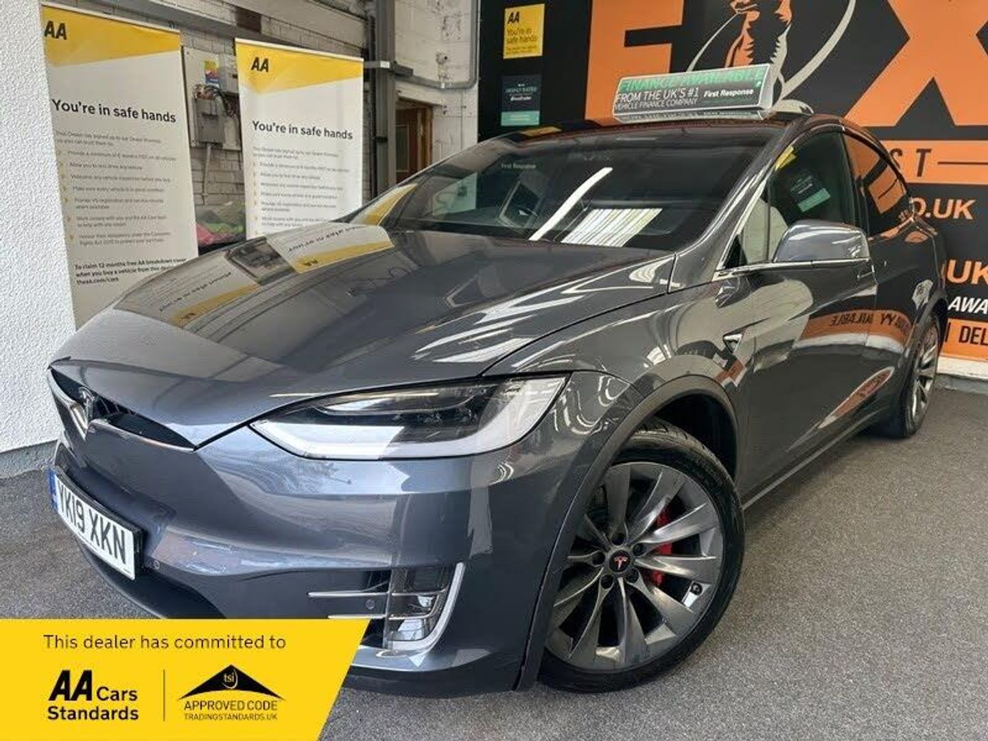 You will not find another like this, Tesla Wolverhampton have just fitted a new high voltage battery & 12a battery under warranty at a cost of £13000. We are an AA approved dealer. Supplied with 12 months parts & labour warranty with nationwide cover & 12 months AA breakdown cover. Finance available. Stunning 19 reg Tesla Model X 75D dual power 7 seater. Finished in the best colour combination of metallic grey paintwork & part black leather upholstery. Only 37000 warranted miles (ave 5200 miles per year). New MOT until 09/11/26 (with no advisories). Full service history. 20'' alloy wheels fitted with excellent matching Compasal Blazer UHP tyres on rear & excellent matching Kustone Passion tyres on front all with 6mm tread. Supplied with 2 keys, carpet mats, towing kit (never yesterday), full car cover, removable sun-blinds & all charging cables. Huge specification including: 17in Touchscreen with Media ABS Active Safety Technologies Airbags - Curtain Airbags - Driver Airbags - Passenger Armrest - Centre Audio - Ultra High Fidelity Sound Advanced AutoPilot Automatic LED Headlights Automatic Rear Liftgate Center Console with Quick Connection Phone Dock Climate Control - Dual Zone Cruise Control Cupholders DAB+ Radio Capability Daytime Running Lights - LED Door Mirrors - Heated and Powerfold Electric Windows - Power One Touch - Front and Rear Electrically Adjustable Steering Column - Tilt-Telescopic Electronic Stability Control and Traction Control Falcon Wing Doors Four ISOFIX Attachments GPS Enabled Homelink Glass Roof Handsfree Talking with Bluetooth Headliner - Alcantara - Black Interior Decor - Dark Ash Wood Keyless Entry Maps and Navigation with Real Time Traffic Information Mirrors - Electrochromatic Panoramic Windshield Parking Sensors and Blind Spot Warning Passive Spoiler Power Steering - Speed Sensitive Premium Upgrade Package Rain Sensing Automatic Windshield Wipers Seats - Front 12-way Electrically Adjustable Smart Air Suspension Subzero Weather Package Supercharger Enabled Towing Package Two USB Ports for Media and Power Tyre Pressure Monitoring System