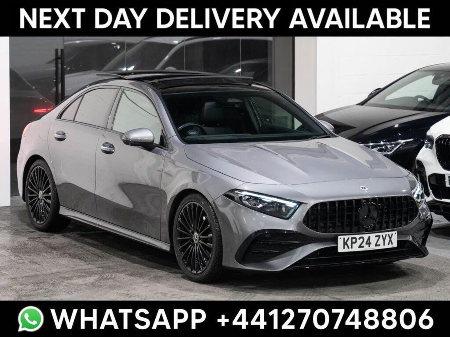 19in Alloy Wheels - AMG Multi-Spoke Design - Aerodynamically Optimised - Painted Titanium Grey with a High-Sheen Finish, ABS - Anti-Lock Braking System with BAS - Brake Assist, Active Bonnet - Pedestrian Safety Measure which Detects an Impact and Raises Bonnet by 65mm, Active Brake ASSIST, Active Lane Keeping Assist, Active Parking Assist, Adaptive Brake Assist with Hold Function and Hill Start Assist, Adaptive Brake Lights, Air Conditioning - Air Vents Black with Surround in Silver Chrome, Air Conditioning - THERMOTRONIC Luxury Automatic Climate Control - Two-Zone with Display, Airbag - Kneebag for Driver, Airbags - Dual Stage - Driver and Front Passenger, Airbags - Windowbags for Driver and Front Passenger, Alarm System with Immobiliser and Interior Protection - Thatcham Category 1, AMG Bodystyling - AMG Front Apron with Front Splitter - AMG Side Sill Panels and AMG Rear Apron with Visible Exhaust Tailpipe Trim Elements, ARTICO Man-Made Leather-MICROCUT Microfibre - Black with Contrasting Topstitching in Red, ATTENTION Assist, Automatic Child Seat Recognition Sensor, Beltline Strips - High Gloss Aluminium, Blind Spot Assist, Bodystyling - Side Skirts - Body-Coloured, Bonnet with Power Domes, Brake Calipers with Mercedes-Benz Lettering on Front, Brake-Pad Wear Warning Indicator, Brushed Stainless Steel Sports Pedals with Rubber Studs, Bumpers - Body Coloured, Car Wash Mode, Centre Armrest - Front with Stowage, Centre Armrest - Rear Folding, Childproof Locks - Manually Operated for Rear Doors and Electrically Operated for Rear Power Windows, Crash-Responsive Emergency Lighting, Cruise Control with Limiter, Cup Holder - Twin Front, DAB Digital Radio Tuner, Direct-Steer System, Door Handles - Body Coloured, Door Mirrors - Electrically Adjustable and Heated with Integrated LED Indicators, Door Sills - with Mercedes-Benz Lettering - Illuminated with Exchangeable Cover, Dual Bluetooth Interfaces, Dynamic Select with a Choice of Driving Modes - ECO-Comfort-Sport and Individual, Electric Parking Brake, Electric Windows - 4, ESP - Electronic Stability Programme with ASR - Acceleration Skid Control, ESP Curve Dynamic Assist, Exhaust - Two Visible Tailpipe Trim Elements, Exit Warning Assist, First Aid Kit and Warning Triangle, Floor Mats - AMG, Fluorescent Jacket for Driver, Glass - Rear Windscreen - Heated with Timer Control, GUARD 360 Vehicle Protection with Anti-theft Alarm System, Hard-Disk Navigation, Head-Up Display, Headlamp Assist - Automatic Headlamp Activation, Heated Front Seats, Hey Mercedes - Voice Activation, Instrument Cluster - Fluid Level Warning Indicator for Fuel - Oil - Coolant and Washer Fluid, Instrument Cluster - Outside Temperature Display, Instrument Cluster - Service Indicator ASSYST, Instrument Cluster - Trip Computer in Multi-Function Display with Current Fuel Consumption Indicator, Instrument Display - 10.25in Digital Display, Interior Lighting - 64-Colour Ambient Lighting, Interior Lighting - Light and Sight Package, Interior Mirror - Reading Lamps in Black - Frameless, ISOFIX and Top-Tether Child Seat Fixing Points in Rear - Two Outer Seats, KEYLESS-GO - Keyless Lock-Unlock, KEYLESS-GO - Starting Function, KEYLESS-GO Comfort Package with Hands-Free Access, Lamp Failure Indicator, LED Tail Lamps, Live Traffic Information, Luggage Compartment Cover, Luggage Nets on Driver and Front Passengers Backrests, MBUX Interior Assistant with 3D Camera in the Overhead Control Panel, MBUX Multimedia System, Media Display - 10.25-inch with Touchscreen, Memory Package - Drivers Seat Electrically Adjustable with Memory Function, Mercedes Me - Remote Services, Mercedes Me Connect - Standard Services, Mirror Package, Mountain Grey, MULTIBEAM LED Headlights with Adaptive Highbeam Assist Plus, Owners Manual - English, Panoramic Glass Sunroof, Parking Package, Pre-Installation for Private Car Sharing, Privacy Glass, Radiator Grille with Mercedes-Benz Pattern in Chrome - Central Star and Single Louvre with Chrome Inlay, Rain-Sensing Windscreen Wipers with Two Sensitivity Settings, Rear Armrest with Two Cup Holders, Rear Fog Light, Remote Central Locking and Crash Sensor with Emergency Opening Function, Roof Lining - Black, Seat Belts - Black, Seat Belts - Rear Three-Point - 3, Seat Belts Reminder - Front and Rear, Seat Comfort Package, Seat Occupancy Sensor - Front Passenger Seat, Seats - Electrically Adjustable Front Memory Seats with Lumbar Support, Seats - Lumbar Support - Four Way, Seats - Rear Seat Backrests - Split Folding 40-20-40, Smartphone Integration, Sound System - Advanced Mercedes-Benz Sound System - 225W, Speed Limit Assist, Speed-Sensitive Power Steering, Sports Seats with Adjustable Head Restraints, Steering Column - Manually Adjustable for Height and Reach, Steering Wheel - 3-Spoke Multi-Function - Trimmed in Leather with Flattened Bottom Section and Perforated Leather in Grip Area, Steering Wheel - Galvanised Shift Paddles, Stowage - Compartment with Retractable Cover in Centre Console, Summer Tyres, Sun Visors with Illuminated Vanity Mirrors, Surround Lighting with Projection of Brand Logo, Suspension - Lowered Comfort Suspension, TIREFIT Tyre-Sealant Kit, Traffic Sign Assist, Trim - Light Longitudinal-Grain Aluminium, Tyre Pressure Monitoring System, USB Package Plus, Window Line - High-Gloss Aluminium, Wireless Charging