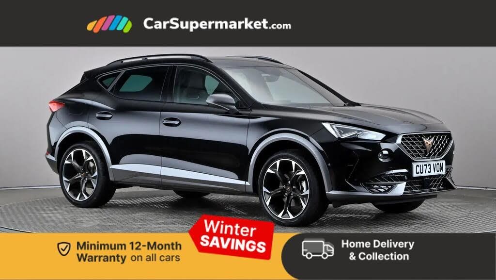 Digital cockpit and configurable dashboard,Driver alert system,Driving profile selection,Forward collision warning with automatic braking,Lane assist,Navigation system with 12'' Touchscreen Display,Park assist (inc front/rear parking sensors),PAS,Predictive adaptive cruise control with speed limiter,Rear view camera,RPM, trip computer, outside temp gauge, instrument light brightness, low fuel warning light, lights on reminder, gearshift indicator,Service interval indicator,Start/stop system with regenerative braking,Voice control system,Wired Android Auto,Wireless apple carplay,Wireless phone charger,Electronic locking differential and dynamic traction support,Standard suspension,2 front and 2 rear USB type C sockets,Auxiliary input socket,DAB radio,Auto dimming rear view mirror,Body colour door handles,Body coloured bumpers,Dark grey wing mirror,Daytime running light with automatic headlight control and coming home feature,Dynamic headlight range control,Electric front/rear windows,Electrically adjustable heated and folding door mirrors with memory function,Front fog lamps with cornering function,Gloss black roof rails and window surrounds,LED Headlights,LED Taillights with dynamic indicator,Rain sensing wipers,Rear diffuser with black simulated exhaust pipes,Rear side wing doors,Rear wash/wipe,Third brake light,Tinted rear windows,Welcome lights,12v power supply in centre console,12V socket,12v socket in loadspace,2 front and 2 rear reading lights,230V socket,3 seat bench in 2nd row,60/40 split rear bench seat with armrest and mechanical seat release,Black headlining,Dust/pollen filter,Front and rear head restraints,Front centre armrest,Height/reach adjust steering wheel,Illuminated interior front door sills,Illuminated sunvisor with mirror,Isofix,Leather multi function steering wheel,Luggage tie-down hooks,Single front passenger seat,Three zone climate control with control panel in rear,Variable luggage/load compartment floor,Wraparound lighting,Genuine Nappa leather Pack - Cupra,Safety and driving pack (M) - Formentor,3 point seatbelts on all rear seats,ABS,Brake control system - ESC and brake booster,Child proof door locks,Driver and front passenger airbags with front passenger airbag de-activation,Electronic parking brake,Front and rear disc brakes,Front side curtain airbags,Hill hold control,Public e-call,Seat belt reminder for front and rear seats,Tyre pressure monitoring system,Anti theft alarm system,Keyless entry and start system (KESSY),Locking wheel bolts,Copper and aluminium interior detailing,19" 'Exclusive' machined sport matte black and silver alloy wheels