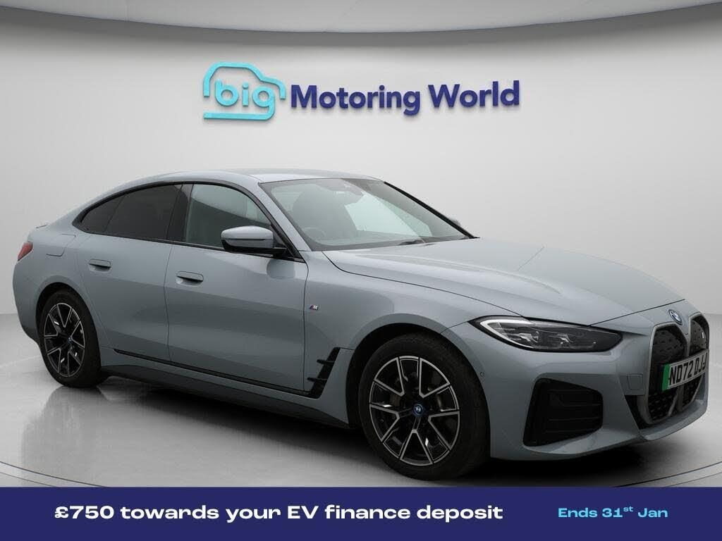 £750 towards your finance depo-Our BMW i4 comes with optional extras worth £1,195. Specification includes a range of fantastic features including £750 towards your finance deposit, Sun Protection Pack, Part Leather Seats, Apple CarPlay, Connected Package Professional, M Sport Exterior Styling Pack, M Sport Bodykit, Satellite Navigation, Privacy Glass, Heated Seats Specification information is supplied by CAPHPI and may vary to the actual car. This data does not form any part of a buying contact. Please check specification prior to purchase in-store. The MOT is valid until November 2026, visit bigmotoringworld.co.uk for more photos, a 360 tour, service history and a free HPI report.Were BIG on peace of mind and this Grey BMW i4 has completed our comprehensive 200 point inspection and passed all checks. Its ready for you to drive away with immediate collection in-store. We include a 90-day warranty as standard plus an option to extend for up to 3 years.Reserve this car exclusively for you, safely and securely at bigmotoringworld.co.uk, with a fully refundable £99 deposit. Test drive before you buy, with no commitment, no hassle and a completely haggle free experience. Still searching and want to see thousands more cars? We are BIG on choice with over 8000 cars to choose from.Visit our award winning web site bigmotoringworld.co.uk.Were Big Motoring World and were BIG on what matters to you.