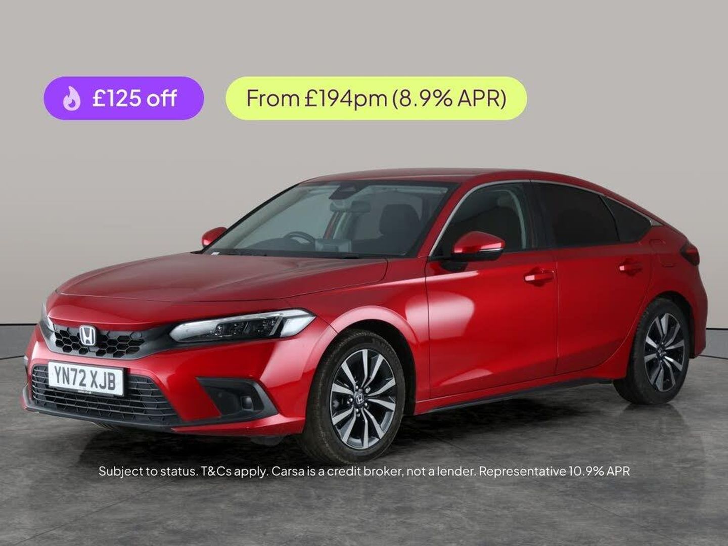 Discover the Honda Civic a stylish red hatchback thats big on innovation and comfort. Enjoy the luxury of heated seats and seamless connectivity with Apple CarPlay and Bluetooth audio streaming. Adaptive cruise control, blind spot assist, and lane departure warning make every journey safer, while LED headlights and digital driver display keep things modern. Effortlessly park with front and rear sensors and a reversing camera, and let the built-in sat nav and traffic sign recognition guide your way. Experience dynamic driving with selectable modes in this smart hybrid. 3 services recorded, last serviced on 10/11/2025 at 62,719 miles. MOT to 10/11/2026. Visit our website for service history, online valuation, full vehicle specification plus multiple images. This vehicle is VAT qualifying. Any feature/option specified here is from 3rd party data. We cannot guarantee the accuracy of any specification supplied by a 3rd party. We recommend that you physically check the specification of the vehicle on site prior to purchase. This information does not form part of the buying contract. Terms & Conditions apply. We have over 2,000 cars available from our 10 national branches, check our website to see all our stock. Our Trustpilot rating is 4.4/5 with over 9,000 reviews.