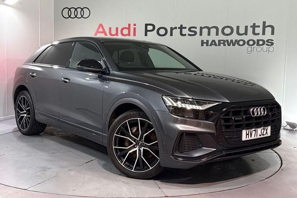 BLACK STYLING PACK, TECHNOLOGY PACKAGE HIGH ( ADAPTIVE AIR SPORT SUSPENSION, POLISHED OAK INLAYS, REAR BENCH SEAT PLUS, 4 ZONE CLIMATE CONTROL, FRONT SPORT SEATS, 4 WAY LUMBAR ) SATELLITE NAVIGATION, REAR PARKING CAMERA, MULTI FUNCTION STEERING WHEEL, HILL HOLD ASSIST, CRUISE CONTROL, AUDI VIRTUAL COCKPIT, LANE DEPARTURE WARNING, APPLE CARPLAY, ANDROID AUTO, DAB RADIO, TINTED WINDOWS - PRIVACY GLASS, FRONT AND REAR PARKING SENSORS, SPLIT FOLDING REAR SEATS, LIGHT & RAIN SENSOR, AUTO DIMMING REAR VIEW MIRROR, SELECTABLE DRIVING MODES, PUSH BUTTON START, DAYTONA GREY WITH LEATHER UPHOLSTERY, 22'' 5 V SPOKE STAR DIAMOND CUT ALLOY WHEELS, POWERED/HEATED FRONT SEATS WITH DRIVERS SEAT MEMORY AND LUMBAR SUPPORT,HD MATRIX LED HEADLIGHTS WITH DYNAMIC REAR INDICATORS, VOICE ACTIVATED CONTROLS AND MUCH MORE.All Audi Approved used cars are offered with a 12-month warranty and roadside assistance.Portsmouth Audi are delighted to offer this Audi Q8 in Daytona grey over Black Valcona Leather and has completed just 47231 miles., We are proud to be part of the Harwoods group, a family run business established in 1931. With four Approved Audi retailers within our group, we have access to over 400 vehicles. If this isn't the right car for you, please contact us and we will find it. Our group stock has spec to include Sunroof, Leather, Heated Seats, Apple Car Play, Heated Steering Wheel, Reverse Camera, Rear Entertainment, Towbar, 360-degree camera, Comfort & Sound Pack, Tech Pack, Panoramic Sun Roof, Tow Bar, Black Pack, Air Suspension, Apple Carplay, Adaptive Cruise, Massage Seats, Refrigerator, AWD, Technology Pack, Head up Display, Vorsprung, Technik, Black Edition, S-Line, S Line, Edition 1, TFSI, Quattro, Sportback, LWB. Other colour options including Black, Blue, Green, Silver, White, Red, Grey, Yellow, Orange. Interior options of Ebony, Black, Ivory, White, Tan, Cream, Oyster, & Euro 6 ULEZ compliant drive trains.-TECHNOLOGY PACKAGE-Video Presentation available on Request