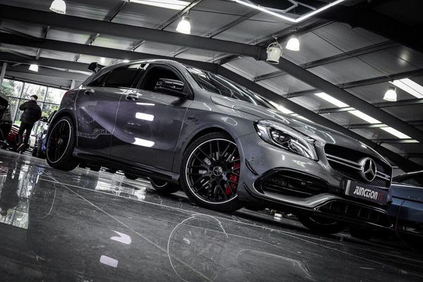 *CLICK - BUY - COLLECT* FINANCE AVAILABLE! HPI CLEAR! Junction 17 Cars now have to offer a stunning Mercedes-Benz A Class 2.0 A45 AMG SpdS DCT 4MATIC Euro 6 (s/s) 5dr.. 6 x Service Records.. Finished in Mountain Grey.. Black Leather Upholstery.. Incredible Specification.. Panoramic Roof.. AMG Ride Control.. AMG Performance Exhaust.. Harman Kardon Audio.. Reverse Camera.. Heated Electric Seats with Memory Package.. Upgraded 19'' AMG Multi Spoke Alloys.. AMG Aero Pack.. Keyless Start.. and more.*ANY THIRD PARTY VEHICLE INSPECTIONS ARE WELCOME* *WE WILL BEAT ANY CAR VALUATION SITE FOR YOUR PART EXCHANGE* Junction 17 Cars (Runner Up at the Motor Trader Independent Dealer Awards 2019 nominated for Car Supermarket of the Year Award) is a unique family run business with over £7 millions worth of stock currently split over our purpose-built showroom in Yaxley, Peterborough and our new showrooms in Grantham and Rugby. Our vehicles can also be reserved with a £99 refundable holding deposit to ensure that they are professionally prepared/valeted for your viewing pleasure. Competitive HP and PCP packages are available with decision/approval available within 15 minutes. We also offer comprehensive warranties over a variety of different terms as well as Williams Ceramic Coating, Flexfuel Engine Carbon Cleaning and more. **NATIONWIDE DELIVERY AVAILABLE** Payment : maximum £500 card payment balance by bank transfer-PAN ROOF, RIDE CONTROL, SPEC!-CAN BE MOVED TO GRANTHAM /PETERBOROUGH !! max £500card payment balance by bank transfer
