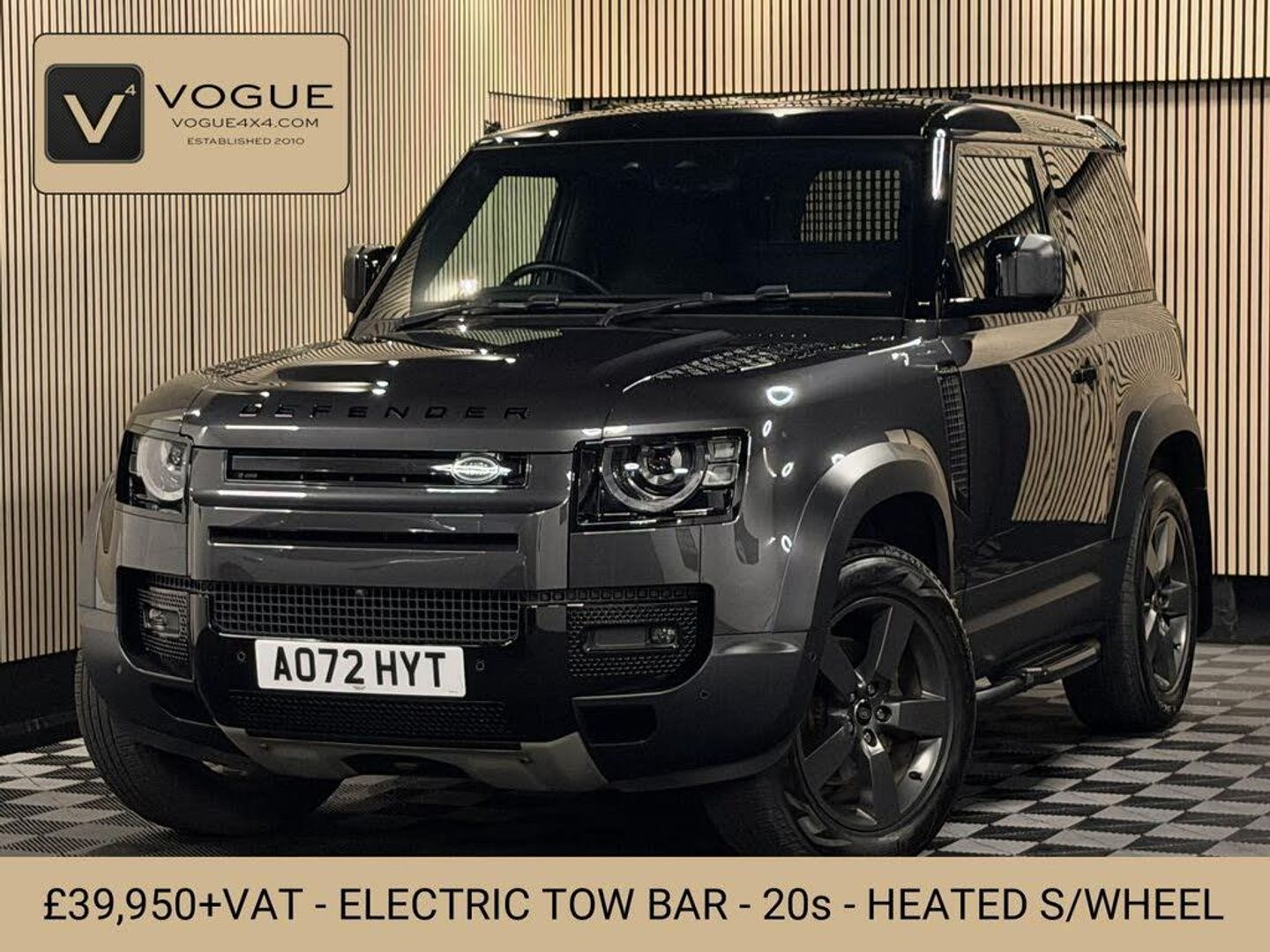 Vogue 4x4 proudly presents this exceptional 2022/72 Land Rover Defender 90 D250 Hard Top Commercial finished in Carpathian Grey with a full Black interior, 20 Style 5098 alloy wheels, extended exterior black pack, roof spoiler, black side steps, Extended wheel arches, Black Defender wheel cover, Black Defender lettering. As an N1 tax category commercial vehicle, it offers an ideal solution for tax-efficient motoring through your business. We can offer Rear seat conversions with a certificate of conformity including refitment of the rear side glass with costs starting at £3,000+VAT This Defender offers a Heated steering wheel, Electric Deployable TOW bar, central infotainment screen, cruise control, 360-degree cameras, heated front seats, and full smartphone connectivity through Apple CarPlay and Android Auto. Vogue 4x4 provides full dealer facilities, including flexible and competitive finance solutions through a range of leading UK lenders. Finance options include PCP with balloon payments, hire purchase, and lease purchase with balloon, with terms available from 1 to 5 years. Our bespoke finance calculator is available via our AutoTrader advert and on our website for instant, tailored quotes. All our vehicles are HPI clear with certification provided. We welcome all part exchanges and accept major debit and credit cards. Extendable warranties are available, and viewings can be arranged at our indoor showroom. For more details or to arrange a viewing, please contact us on 01487 830386 (office) or 07796 446157 (mobile), or visit our website at Vogue4x4.com.
