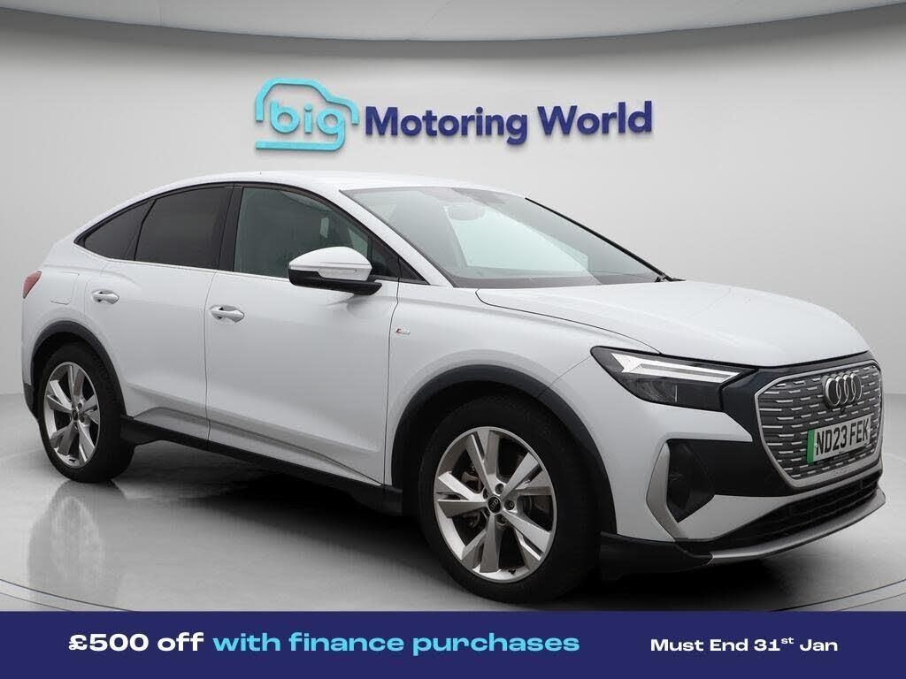 £500 towards your finance depo-Our Audi Q4 e-tron is finished in White. Specification includes a range of fantastic features including £500 towards your finance deposit, Part Leather Seats, Apple CarPlay, Lane Assist, S Line Body Styling, Android Auto, Satellite Navigation, Privacy Glass, Heated Seats, Bluetooth Specification information is supplied by CAPHPI and may vary to the actual car. This data does not form any part of a buying contact. Please check specification prior to purchase in-store. The MOT is valid until December 2026, visit bigmotoringworld.co.uk for more photos, a 360 tour, service history and a free HPI report.Were BIG on peace of mind and this White Audi Q4 e-tron has completed our comprehensive 200 point inspection and passed all checks. Its ready for you to drive away with immediate collection in-store. We include a 90-day warranty as standard plus an option to extend for up to 3 years.Reserve this car exclusively for you, safely and securely at bigmotoringworld.co.uk, with a fully refundable £99 deposit. Test drive before you buy, with no commitment, no hassle and a completely haggle free experience. Still searching and want to see thousands more cars? We are BIG on choice with over 8000 cars to choose from.Visit our award winning web site bigmotoringworld.co.uk.Were Big Motoring World and were BIG on what matters to you.