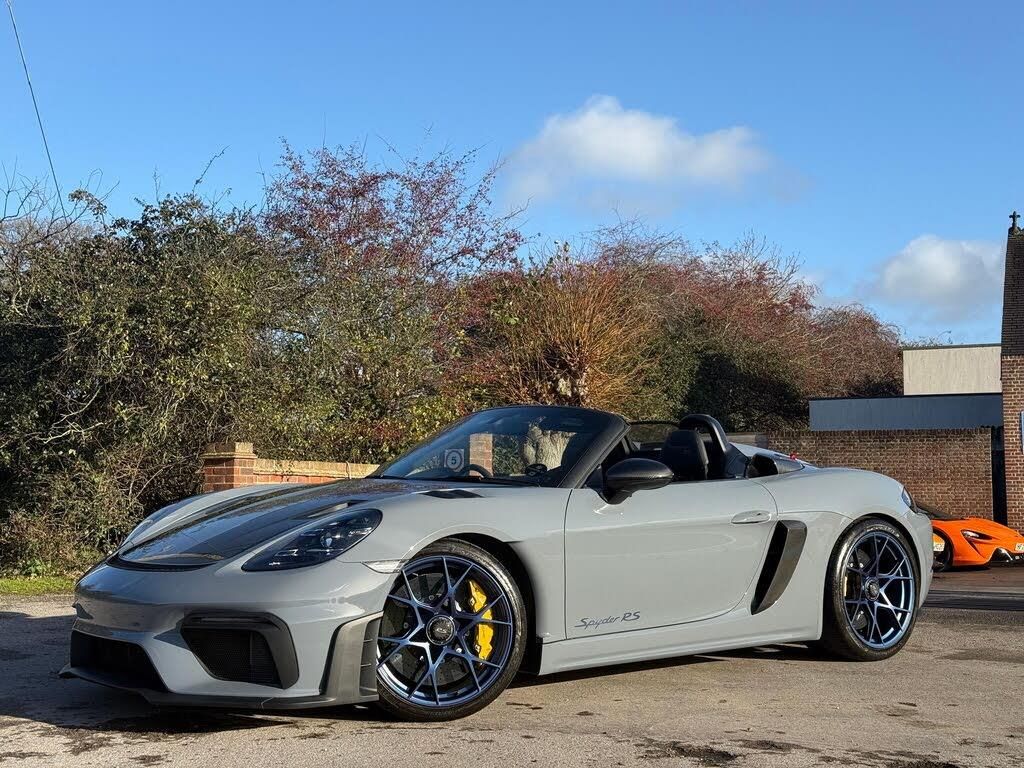 12-Volt Socket in Passenger Footwell, 20in Alloy Wheels - 718 Cayman GT4 RS - Forged Aluminium - Painted in Dark Silver, A-Pillars in Black Race-Tex, Adjustable Chassis For Track Use, Adjustable Fan with Air Recirculation and Defroster Functions, Adjustable Suspension Race Track Chassis, Alarm System, Ascending Centre Console with an Uncovered Storage Compartment and a Closed Storage Compartment, Automatic Headlight Activation including Welcome Home Lighting, Automatically Dimming Exterior and Interior Mirrors, Bi-Xenon Headlights with Integrated LED Daytime Running Lights, Bonnet Made of Carbon Fibre Reinforced Plastic - CFRP - in Exterior Colour with Black NACA Air Inlets for Brake Cooling, Brake Calipers - Red, Central Wheel Bolts in Black including Wheel Hub Cover with RS Logo in Silver, Closed Underbody Panelling, Cruise Control, Dashcam Preparation, Digital Displays for Vehicle Speed - Chosen Gear - Odometer -Trip Meter and Time, Digital Radio, Door Opening Loops - Decorative Stitching - Embroidered Spyder RS Lettering and Perforated Race-Tex Seat Centre in Arctic Grey, Door Sill Guards in Satin Carbon-Weave Finish with Model Designation Spyder RS in Silver, Dynamic Gearbox Mount System, Electric Windows with One-Touch Operation and Door Seal Protection Function, Electrically Adjustable Heated Exterior Mirrors on Door Waist Rails - Aspherical on Drivers Side, Electrically Controlled Parking Brake, Electromechanical Power Steering with Variable Steering Ratio and Speed Dependant Steering Assistance, Engine Water Cooled with Thermal Management, Exclusive Design Fuel Filler Cap, Fixed Rear Lip Spoiler, Floor Mats, Front Apron with Large Cooling Intakes, Front Wheel Arches Made of Carbon Fibre Reinforced - CFRP in Exterior Colour including Wheel Arch Ventilation in Black, Full Size Airbags for Driver and Front Passenger, Green Tinted Heat-Insulating Glass, Instrument Cluster with Central Rev Counter and High Resolution 4.6inch Colour Display, Instrument Dials in Black with Yellow Indices and Scales - Rev Counter in Titanium Colour - Spyder RS Logo, Intelligent Lightweight in Aluminium-Steel-Composite Construction, Interior Package - Carbon, LED Reading Lights - Orientation Lighting and Ignition Lock - Additionally Luggage Compartment and Glove Box Lighting, LED Taillights - Tinted with Integrated 4-Point Brake Lights and Reversing Lights, Lightweight Door Panels with Storage Net in Black and Opening Loops in Arctic Grey, Lightweight Spring-Strut Axle Front and Rear, Luggage Compartments at Front and Rear, Manual Lightweight Spyder Roof - Black Fabric, Model Designation Stripes - Spyder RS in Satin Black, PASM - Porsche Active Suspension Management - Sports Susupension and Ride Height Lowered by 30mm, PCM - Porsche Communication Management - Include Navigation, PDK Gear Changer with Manual Alley - Grip Area and Shift Gaiter in Race Tex - Shift Pattern in Racing Yellow, PORSCHE Logo in Accent Trim on Rear Apron in Painted in Satin Black, Porsche Side Impact Protection - POSIP, Porsche Stability Management - PSM Including ABS, Porsche Torque Vectoring - PTV with Mechanically Locking Rear Differential, Porsche Track Precision App, Process Air Inlets Behind Driver and Passenger Windows in Black, RS Sports Steering Wheel with Steering Wheel Rim and PDK Gear Selector in Race-Tex, Rain Sensing Automatic Windscreen Wipers, Rear Apron Lower Part in Black with Diffuser including Fins, Remote Central Locking with Immobiliser, Seats - Full Bucket, Separate Auxiliary Lights in the Front End with LED Indicators and Position Lights, Side Air Intakes with One Grille - Sideblades in Black Synthetic, Side Window Trims in Black, Sound Package Plus, Sport Exhaust System - Flow Optimised Stainless Steel Lightweight Sports Exhaust System with 2 Tailpipes Made of Stainless Steel in Black High Gloss, Sports-Look Pedals and Footrest, Steering Wheel Rim in Black Race Tex and Top Centre Marking in Yellow, Storage Compartment in Each Door, TPM - Tyre Pr
