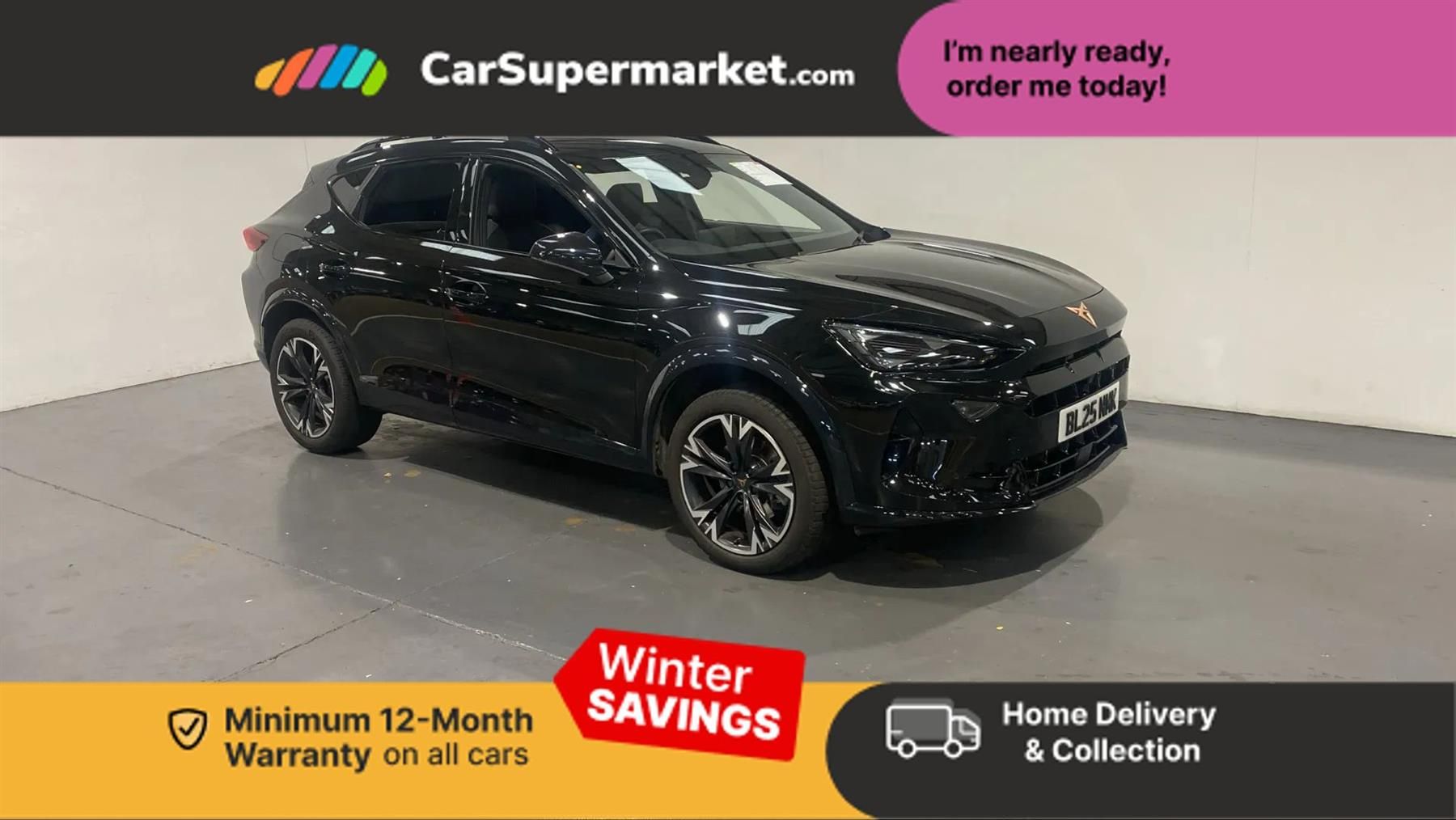 10.25" digital cockpit and configurable dashboard,Adaptive cruise control with follow-to-stop and speed limiter,Advanced driver alert system,Driving profile selection,Dynamic road sign display,Emergency steering support with turn assist,Forward collision warning with automatic braking,Front and rear parking sensors,Full link phone integration,Lane assist,Progressive steering,RPM, trip computer, outside temp gauge, instrument light brightness, low fuel warning light, lights on reminder, gearshift indicator,Service interval indicator,Start/stop system with regenerative braking,Voice control system,Wired Android Auto,Wireless apple carplay,Wireless phone charger,CUPRA sport suspension,Electronic locking differential and dynamic traction support,2 front and 2 rear USB type C sockets,7 speakers,Media system with navigation, 12.9" touchscreen display, voice control, DAB, steering wheel mounted controls,Auto dimming rear view mirror,Body colour door handles,Body coloured bumpers,Dark grey wing mirror,Daytime running light with automatic headlight control and coming home feature,Door panel ambient lighting,Dynamic headlight range control,Electric front/rear windows,Electrically adjustable, heated and folding door mirrors,Gloss black roof rails and window surrounds,High beam assist,LED 3rd brake light,LED front fog lamps with cornering function,LED Headlights,LED Taillights with dynamic indicator,Rain sensing wipers,Rear diffuser with black simulated exhaust pipes,Rear fog lights,Rear side wing doors,Rear wash/wipe,Tinted rear windows,Welcome lights (within exterior mirror housing),12V socket,2 front and 2 rear reading lights,3 seat bench in 2nd row,60/40 split rear bench seat with armrest and mechanical seat release,Black headlining,Black interior roof lining,Cupra sports pedals,Dust/pollen filter,Front and rear head restraints,Front centre armrest,Heated supersports multifunction leather steering wheel with satellite buttons and gear shift paddles,Height/reach adjust steering wheel,Illuminated aluminium doorsteps,Illuminated interior front door sills,Illuminated sunvisor with mirror,Interior ambient lighting,Isofix,Manually adjustable height and lumbar support for front seats,PVC/Cloth upholstery with copper stitching + Sport seats,Satellite steering wheel,Single front passenger seat,Storage pockets on rear of front seats,Three zone climate control with control panel in rear,Variable luggage/load compartment floor,3 point seatbelts on all rear seats,ABS,Brake control system - ESC and brake booster,Child proof door locks,Driver and front passenger airbags with front passenger airbag de-activation,Electronic parking brake,Front and rear disc brakes,Front side curtain airbags,Hill hold control,Public e-call,Seat belt reminder for front and rear seats,Tyre pressure monitoring system,Anti theft alarm system,Central locking system Keyless Go,Locking wheel bolts,Copper and aluminium interior detailing,18" Sonora machined silver alloy wheels