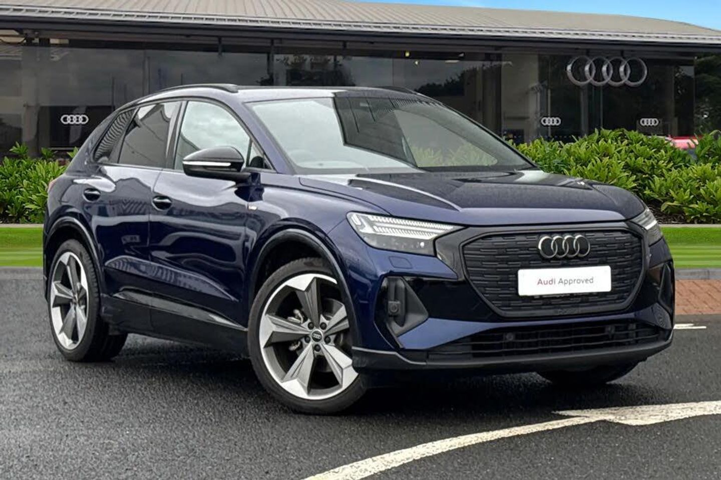 Carlisle Audi is pleased to introduce this stunning Audi Q4 e-tron Black Edition . This SUV is finished in the striking Navarra Blue and sits on 21" alloy wheels which add the modern exterior. Whilst the Privacy Glass enhances the exterior finishes as well as enhance the privacy of your rear passengers. Coming with a 55kwh battery, this Q4 is equipped with 168bhp, and with the ability to travel up to 208 miles on a single charge. This Q4 comes with the Technology Pack, which includes Matrix LED headlights with dynamic indicator, and Headlight washers, designed to perfectly illuminate the road no matter the conditions. This pack also includes LED Rear Lights with the modern light strip, perfect for those who like to stand out from the crowd. This Pack also includes the upgraded SONOS premium sound system, perfect for listening to all your favorite tunes in sublime quality. With USB-C ports in the rear and the Audi phone box light in the front you can easily stay charged and connected whilst on the move. Inside you'll find seats finished in the supple Twin Leather as well as front sports seats with 4-Way Electric Lumbar Support that provide extra comfort on those long journeys. This vehicle comes with 3-Zone Electronic Climate Control that allows all your passengers to pick their perfect temperature.