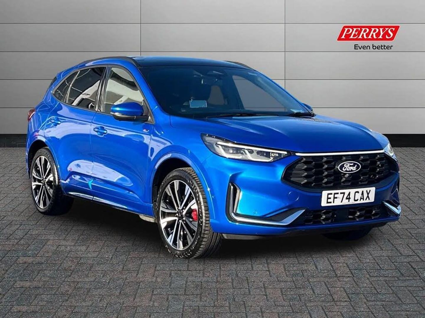 12.3" digital colour instrument cluster,360 degree view camera,Clear exit assist,Cross traffic alert with active braking,e-Call (emergency call),Ford easy fuel,Ford SYNC 4 Navigation with 13" touchscreen, DAB radio, emergency assistance, Andriod Auto/Apple CarPlay, 5G modem & Ford Pass connect,Front and rear parking sensors,Hands free power tailgate,Lane centering assist,Lane keeping aid with lane departure warning,Power assist steering,Selectable drive modes,Service interval indicator,Sports suspension,B&O premium audio system with 10 speakers, subwoofer and 2 USB ports,Auto headlamps with high and low beam,Black roof rails,Body colour bumpers,Front LED fog lamps,Large rear spoiler,LED daytime running lights,LED rear lights,LED third brake light,Pop out door edge protectors,Power front/rear windows with global close,Power heated folding door mirrors with puddle lights, memory function and camera,Power opening panoramic roof,Quickclear heated windscreen,Rain sensing wipers,Rear privacy glass,Rear side wing doors,Rear wiper,ST-Line body styling kit,2nd row sliding seats,Electronic automatic temperature control (EATC),Front and rear head restraints,Partial premium touch sensico upholstery,Rear centre head restraint,Single front passenger seat,Sports seats,Driver assistance pack - Kuga Auto,Winter pack - Kuga,3x3 point rear seatbelts,Airbags - front driver/passenger, front and rear curtain,Drivers knee airbag,Dynamic brake support,Electronic stability control (ESC) and ABS,Evasive steering assist,Ford MyKey Gen 2 safety system,Manual child proof rear door locks,Pre collision assist with autonomous emergency braking,Rear seat Occupancy alert,Red brake calipers,Tyre pressure monitoring system,Engine immobiliser,Keyless entry and Ford power start button (Keyless start),Locking wheel nuts,Remote powered central double locking doors,Thatcham category 1 alarm,20in Alloy Wheels - 5x2 Spoke - Absolute Black - Machined,Desert Island Blue,Luggage Compartment Mat,Mini Spare Wheel,Retractable Towbar with Electrical Release Function,Single Phase Public Charge Cable and Cable Bag,Technology Pack