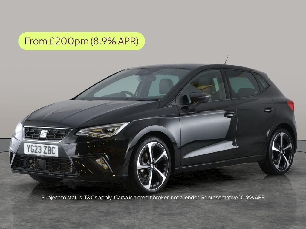 Discover the Seat Ibiza FR Sport Hatchback in sleek black, featuring stylish 18in alloy wheels and a sporty half leather interior. Enjoy Apple CarPlay and Bluetooth audio streaming for seamless connectivity on every drive. Keyless entry adds convenience, while paddle shift brings added driving excitement. Navigate with ease using built-in Sat Nav and stay comfortable year-round with dual zone digital climate control. This automatic, petrol Ibiza is ready to impress. 2 services recorded, last serviced on 10/12/2025 at 8,239 miles. MOT to 15/12/2026. Visit our website for service history, online valuation, full vehicle specification plus multiple images. This vehicle is VAT qualifying. Any feature/option specified here is from 3rd party data. We cannot guarantee the accuracy of any specification supplied by a 3rd party. We recommend that you physically check the specification of the vehicle on site prior to purchase. This information does not form part of the buying contract. Terms & Conditions apply. We have over 2,000 cars available from our 10 national branches, check our website to see all our stock. Our Trustpilot rating is 4.4/5 with over 9,000 reviews.