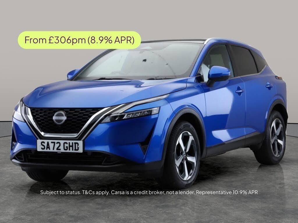 Experience the Nissan Qashqai in striking blue, packed with premium features for ultimate comfort and confidence. Enjoy the luxury of a glass roof, heated seats, and a heated steering wheel. Stay connected with Apple CarPlay and let the advanced head-up display keep key info in your view. The surround view system, 360-degree camera, reversing camera, and LED headlights offer unbeatable visibility and ease of parking. Intelligent safety systems include blind spot assist, lane intervention, and departure warning. All this, plus seamless hybrid automatic performance. 1 service recorded, last serviced on 17/10/2025 at 17,381 miles. MOT to 25/09/2026. Visit our website for service history, online valuation, full vehicle specification plus multiple images. Any feature/option specified here is from 3rd party data. We cannot guarantee the accuracy of any specification supplied by a 3rd party. We recommend that you physically check the specification of the vehicle on site prior to purchase. This information does not form part of the buying contract. Terms & Conditions apply. We have over 2,000 cars available from our 10 national branches, check our website to see all our stock. Our Trustpilot rating is 4.4/5 with over 9,000 reviews.