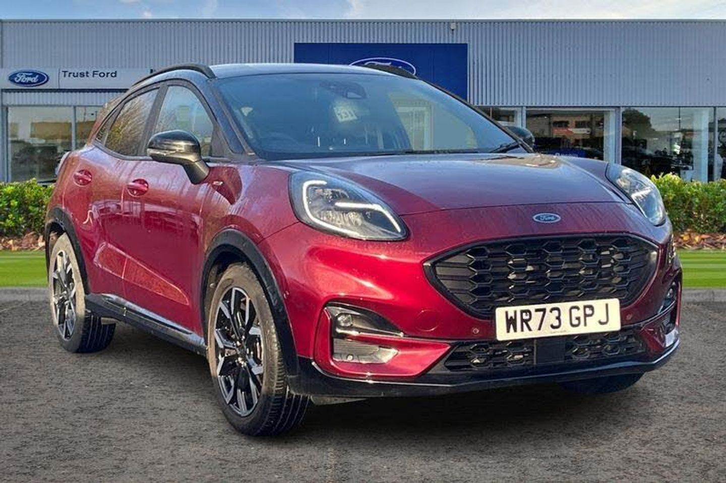 Driver impairment monitor, Emergency call service, Ford easy fuel, Full digital 12.3 instrument cluster, Hands free power tailgate with keyless entry system, Lane keeping aid with lane departure warning, Power assist steering, Power start button, Rear parking sensor, Selectable drive modes(Normal, Eco, Sport, Slippery and Trail), Speed sign recognition, Automatic headlights with auto high beam, Automatic rain sensing wipers, Black contrast roof including A pillars, rear roof spoiler and door mirrors, Exclusive paint, Front fog lamps, LED daytime running lights, LED rear lamps, Power foldable heated door mirrors with puddle lamps, Privacy glass to side rear windows and tailgate glass, Quickclear heated windscreen, Rear side wing doors, Rear wiper, ST-Line body styling kit with unique grille and large rear spoiler, Third brake light, 3 seat bench in 2nd row, Centre console with armrest and stowage, Ford megabox extended bootspace, Front and rear head restraints, Front floor mats, Manual 4 way driver seat adjust with lumbar adjustment, Manual 4 way passenger seat with lumbar seat adjustment, Sensico partial premium upholstery, Single front passenger seat, ST-Line flat bottomed sensico leather steering wheel with leather handbrake and aluminium gear knob, Wireless charging pad with electronic air temperature control (EATC), 3 rear seatbelts, Child safety lock, Electronic stability control (ESC) and hill start assist, Pedestrian/cyclist detection & post-collision braking, Pre collision assist system, Tyre pressure monitoring system (TPMS)