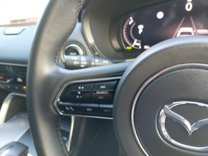12.3" Colour entertainment centre display with mazda connect infotainment, Power lift gate with handsfree function, Wireless apple car play/android Auto, Reversing camera with static guide lines, Mazda Navigation System with european mapping, Heated front seats with 3 stage setting, Heated leather wrapped steering wheel, Integrated bluetooth, Blind spot assist, Cruise control, Power start/stop button, Lane keep assist system (LAS) with Lane departure warning system (LDWS), Front and rear parking sensors, AM / FM / DAB radio with 8 speakers, Auto dimming driver's door mirror, Electrically adjustable, heated auto power folding door mirrors, Frameless auto dimming interior rear view mirror, Dual zone climate control air conditioning with rear air vents, ISOFIX child seat anchorage points attached on outer rear seats, Leather upholstery, Electronic parking brake with auto disengage function and auto hold function, Hill launch assist, Smart keyless entry, 18" Grey metallic alloy wheels