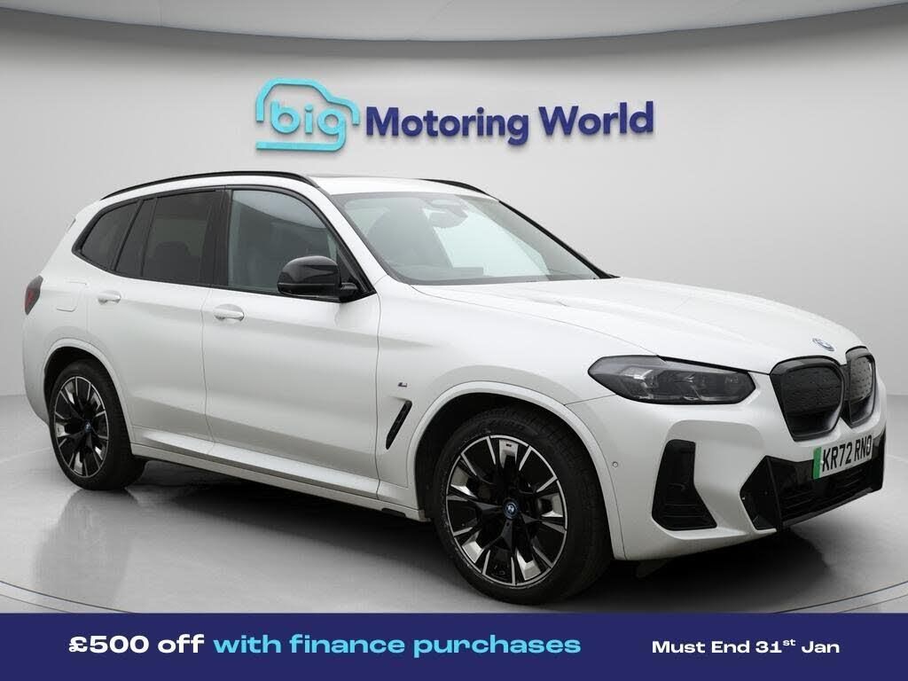 £500 towards your finance depo-Our BMW iX3 is finished in White. Specification includes a range of fantastic features including £500 towards your finance deposit, Panoramic Roof, Sun Protection Pack, Head up Display, 20'' Alloy Wheels, Leather Seats, Apple CarPlay, Adaptive Cruise Control, Electric Seats, Harman Kardon Speakers Specification information is supplied by CAPHPI and may vary to the actual car. This data does not form any part of a buying contact. Please check specification prior to purchase in-store. The MOT is valid until December 2026, visit bigmotoringworld.co.uk for more photos, a 360 tour, service history and a free HPI report.Were BIG on peace of mind and this White BMW iX3 has completed our comprehensive 200 point inspection and passed all checks. Its ready for you to drive away with immediate collection in-store. We include a 90-day warranty as standard plus an option to extend for up to 3 years.Reserve this car exclusively for you, safely and securely at bigmotoringworld.co.uk, with a fully refundable £99 deposit. Test drive before you buy, with no commitment, no hassle and a completely haggle free experience. Still searching and want to see thousands more cars? We are BIG on choice with over 8000 cars to choose from.Visit our award winning web site bigmotoringworld.co.uk.Were Big Motoring World and were BIG on what matters to you.