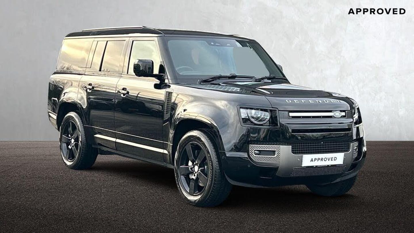20" 5 spoke alloy wheels with Polished silver - Style 5098,1 x USB-C (power only) & 1 x USB-C (power & data) in Row 1, 2 x USB-C in Row 2,11.4" touchscreen,12V power socket in loadspace,2 x USB-C in Row 3,3 seat bench in 2nd row,3 seat bench in third row,360 degree parking aid,3D Surround Camera with 360 View, 180 Rear View, Front Traffic Detection, Forward Vehicle Guidance, Tow Hitch Assist and clear sight Ground View,5 x 3 point seatbelts,8 speed automatic transmission,ABS,Adaptive cruise control,Adaptive dynamics,Air Quality Sensor,Alarm,All season tyres,All wheel drive system,Android Auto,Apple CarPlay,Automatic headlight levelling,Automatic headlights,Black exposed rear recovery eyes,Black roof rails,Blind spot assist,Bluetooth system,Body coloured bonnet,Brake hold function,Brake pad wear indicator,Cabin Air Purification plus,Centre high mounted stop light,Clear exit monitor,Configurable cabin lighting,Connected navigation pro,Cornering brake control (CBC),Customer configurable autolock,DAB Radio (Digital Audio Broadcasting),Driver and passenger airbags,Driver condition monitor,DSC - Dynamic Stability Control,Durable rubber cabin flooring,Durable rubber loadspace flooring,EBD - Electronic brakeforce distribution,Electric heated/power fold door mirrors with approach lights and auto dimming driver side,Electric parking brake (EPB),Electric power assisted steering (EPAS),Electric reach + rake adjustable steering column,Electric windows with one touch open/close and anti-trap,Electrically adjustable steering column,Electronic air suspension,Emergency brake assist,Emergency braking,ESP + traction control,Extended leather upgrade,Follow me home lighting,Footwell lights,Front airbags with passenger seat occupant detector,Front fog lights,Front head restraints,Front passenger isofix child seat attachment,HDC - Hill descent control,Heated rear window with timer,Heated steering wheel,Heated windscreen,Hill launch assist,Illuminated metal treadplates with brand name script,Immobiliser,Interactive driver display,Intrusion sensor,Keyless entry,Lane keep assist,LED tail lights,Loadspace cover,Loadspace Hook,Locking wheel nuts,Low traction launch,Matrix LED headlights with signature DRL,Meridian 700w surround sound audio system with 15 speakers,Multifunction steering wheel,Non-smoker package,Online pack with data plan - Defender,Overhead stowage for sunglasses,Pivi pro connected,Power operated child locks,Privacy glass,Puddle lights,Push button start,Rain sensing windscreen wipers,Rear collision monitor,Rear fog lights,Rear headrests,Rear ISOFIX,Rear reading lights,Rear side wing doors,Rear traffic monitor,Rear wiper,Remote for (e-Call,Optimised assistance call,InControl app,Climate,beep and flash and door),RSC - Roll stability control,Seat belt reminder,Secure tracker pro,Side hinged tailgate,Single front passenger seat,Sliding panoramic roof,Soft close tail door,Standard tail door,Storage glovebox,Sunvisors with illuminated vanity mirrors,TPMS (Tyre pressure monitoring system),Traffic sign recognition with adaptive speed limiter,Trailer stability assist,Trip computer,Twin front cupholders,Twin speed transfer box,Wireless device charging