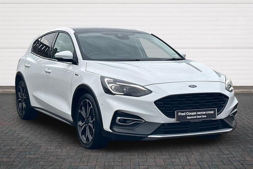 Wireless Charging, Frozen White, 18in Alloy Wheels - 5x2 Spoke - Absolute Black Machined Finish, ABS - Anti-lock Braking System, Acoustic Laminated Windscreen, Active Badge, Active Front and Rear Bumper with Unique Upper and Lower Grille, Active Park Assist, Airbags - Driver and Front Passenger, Airbags - Front Side Impact, Airbags - Front and Rear Side Curtain, Alarm - Thatcham Category 1 with Volume Sensing and Perimeter, Automatic Dimming Rear View Mirror, B&O PLAY Premium Audio System, Black Finish on Upper Door Line, Centre Console - Premium with Sliding Armrest - Cupholder with Sliding Cover - 12V Front Power Point, Child Proof Rear Door Locks, Courtesy Light - Ambient LED Courtesy Lighting, Cruise Control with Speed Limiter, DEATC - Dual-Zone Electronic Automatic Temperature Control, Door Handles - Body Colour, Door Mirrors - Electrically-operated - Heated - Power-Foldable - Body Colour Housings - Side Indicators - Puddle Lights, ESC - Electronic Stability Control, Electric Parking Brake, Fog Light Bezel - Unique Active - Carbon Black, Ford Easy Fuel System, Ford Key Free System - Keyless Entry with Keyless Start, Ford SYNC3 DAB Navigation System, FordPass Connect, Front Bumper - Unique Active Body Colour Upper - Carbon Black Extension, Front Lower Grille - Black Mesh, Front Passenger Airbag Deactivation Switch, Front Passenger Seat - Rotary Recliner, Front Seat - Drivers Electrically-Operated Lumbar Support Adjustment, Front Seat - Drivers Power Height - Fore-Aft - Power Recliner and Lumbar Seat Support, Front Seat - Passenger Manual Height - Lumbar and Fore-Aft Adjustment, Front Seat - Passengers Manual Lumbar Support Adjustment, Front Seatback Map Pockets - Driver and Passenger, Front Seats - Driver and Passenger Heated Seats, Front Seats - Sports Style V-shape with High Bolster, Front Upper Grille - Honeycomb Mesh, Front and Rear Floor Mats with Blue Stitching, Front and Rear Seatbelt Minder, Gearshift Knob - Leather-Trimmed, Head-Up Display, Headlight Bezel - Black, Headlights - Automatic On-Off, Headlights - LED, Heated Steering Wheel, Hill Start Assist, Intelligent Speed Assistance, Keyless Entry, LED Front Fog Lights with Cornering Function, Lane Keeping Aid with Lane Departure Warning, Load Compartment Area Cover, Load Floor Carpet, Locking Wheel Nuts, MyKey, Panoramic Roof - Openable, Parking Sensor - Front and Rear, Post Collision Braking, Power Steering, Pre-Collision Assist with Autonomous Emergency Braking and Pedestrian-Cyclist Detection, Quickclear Heated Windscreen, Rain Sensitive Windshield Wipers, Raised Ride Height - 30mm, Rear Bumper - Unique Active Body Colour with Carbon Black Extension, Rear Centre Headrest, Rear Fog Lamps, Rear Privacy Glass, Rear Seat - 60-40 Split Folding Seats, Rear Seat Fixed Cushion, Rear Wide View Camera, Remote Central Locking and Engine Immobiliser, Scuff Plates - Front Polished Stainless Steel with Etched Active Logo, Seats - ISOFIX Mounting Provision for Child Seats, Selectable Drive Modes with Slippery and Trail Mode, Side Skirts - Unique Active Self Colour, Soft Console Knee Pads with Blue Stitching, Spare Wheel - Mini Steel, Steering Column - Rake and Reach Adjustment, Steering Wheel - 3-Spoke - Leather Trimmed, Tailgate Wash-Wipe, Traction Control - TC, Trip Computer, Twin Exhaust Tailpipes, Tyre Pressure Monitoring System, Unique Door and Instrument Panel Inserts, Unique Skid Plates and Side Rocker Mouldings, Windows - Electrically Operated Front and Rear with One Touch Opening and Closing