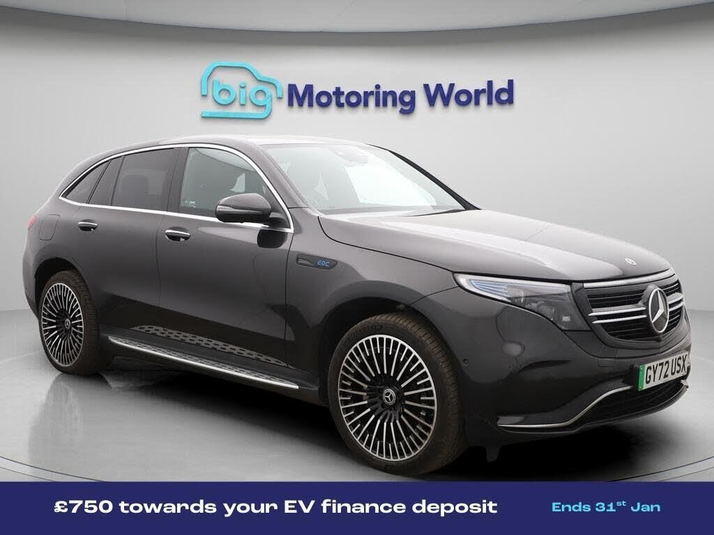 £750 towards your finance depo-Our Mercedes-Benz EQC comes with optional extras worth £715. Specification includes a range of fantastic features including £750 towards your finance deposit, Comfort Pack, Premium Plus, All Wheel Drive, Head up Display, 21'' Alloy Wheels, Leather Seats, Air Suspension, Apple CarPlay, Electric Seats Specification information is supplied by CAPHPI and may vary to the actual car. This data does not form any part of a buying contact. Please check specification prior to purchase in-store. The MOT is valid until November 2026, visit bigmotoringworld.co.uk for more photos, a 360 tour, service history and a free HPI report.Were BIG on peace of mind and this Grey Mercedes-Benz EQC has completed our comprehensive 200 point inspection and passed all checks. Its ready for you to drive away with immediate collection in-store. We include a 90-day warranty as standard plus an option to extend for up to 3 years.Reserve this car exclusively for you, safely and securely at bigmotoringworld.co.uk, with a fully refundable £99 deposit. Test drive before you buy, with no commitment, no hassle and a completely haggle free experience. Still searching and want to see thousands more cars? We are BIG on choice with over 8000 cars to choose from.Visit our award winning web site bigmotoringworld.co.uk.Were Big Motoring World and were BIG on what matters to you.