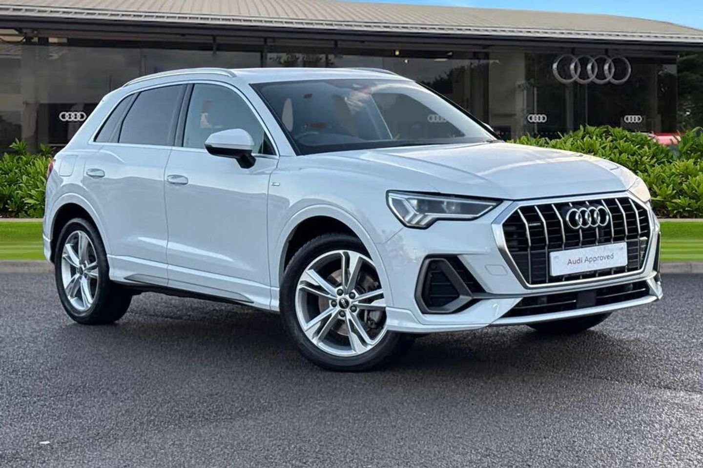 Making a great addition to our Audi Approved range, is this Q3 S Line 40 TDI Quattro in Glacier white with its 19" 5-twin-spoke dynamic style alloy wheels, which look superb out on the roads. The LED headlights with LED rear lights create that strong visibility in all weather conditions. This Q3 comes equipped with some fantastic features, such as the reversing camera which creates that additional vision and assists greatly whilst maneuvering those tighter spaces. The climate control can be adjusted to your prefered climate on any journey. ISOFIX child seat mounts are fitted to the front passenger and outer rear seats of this Q3, making it suitable for the whole family to enjoy. The privacy glass creates that additional privacy for passengers on all journeys. Connectivity is made seamless, thanks to the Bluetooth interface. DAB/FM radio is fitted to this vehicle which gives a larger variety of stations for all passengers and driver to listen to and enjoy on any journey in this vehicle. The interior is fitted with the gorgeous seats throughout creating a comfortable look and feel to this vehicles cabin. The multimedia interface allows the driver and front passenger to access different media, such as Apple Carplay and Android Auto, allowing you to use apps like Spotify, Google Maps, Apple Music and other apps also. The Audi drive select feature lets you choose your prefered drive mode on any journey, for a more personalised driving experience. The driver assist can also be adjusted to your driving preference on all journeys in this Q3. This vehicle will benefit from remainder of Manufacturer's Warranty or minimum 1-year warranty and 1 year's roadside assistance at the point of purchase. Please contact Crewe Audi for more information or enquire online today. This vehicle meets the requirements ULEZ. By driving a low emissions vehicle, you are helping to improve air quality and reduce the health risks associated with poor air quality.