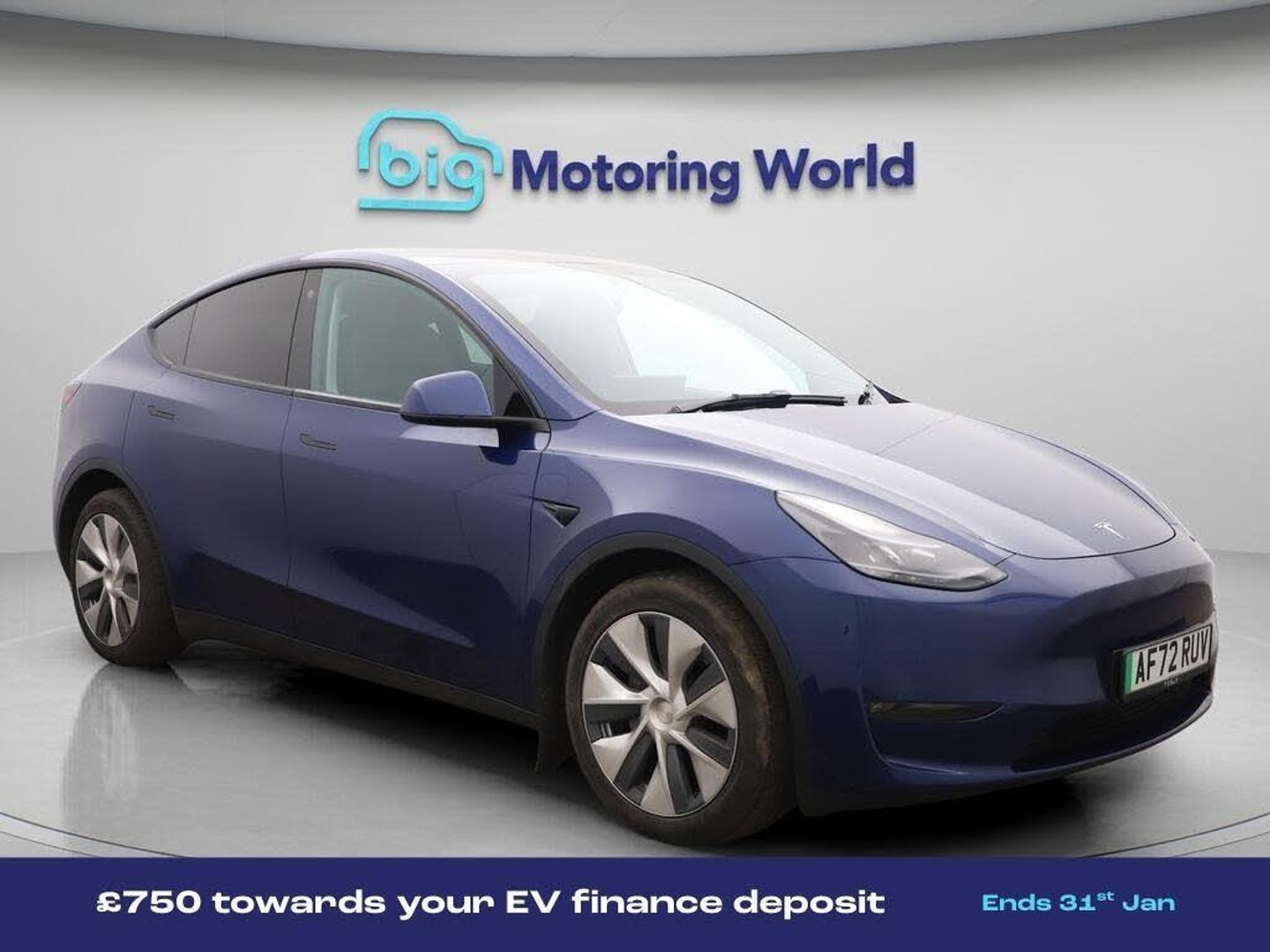£750 towards your finance depo-Our Tesla Model Y is finished in Blue. Specification includes a range of fantastic features including £750 towards your finance deposit, All Wheel Drive, Panoramic Roof, Leather Seats, Satellite Navigation, Privacy Glass, Heated Seats, Wireless Phone Charging, Rear View Camera, Heated Rear Seats Specification information is supplied by CAPHPI and may vary to the actual car. This data does not form any part of a buying contact. Please check specification prior to purchase in-store. The MOT is valid until September 2026, visit bigmotoringworld.co.uk for more photos, a 360 tour, service history and a free HPI report.Were BIG on peace of mind and this Blue Tesla Model Y has completed our comprehensive 200 point inspection and passed all checks. Its ready for you to drive away with immediate collection in-store. We include a 90-day warranty as standard plus an option to extend for up to 3 years.Reserve this car exclusively for you, safely and securely at bigmotoringworld.co.uk, with a fully refundable £99 deposit. Test drive before you buy, with no commitment, no hassle and a completely haggle free experience. Still searching and want to see thousands more cars? We are BIG on choice with over 8000 cars to choose from.Visit our award winning web site bigmotoringworld.co.uk.Were Big Motoring World and were BIG on what matters to you.