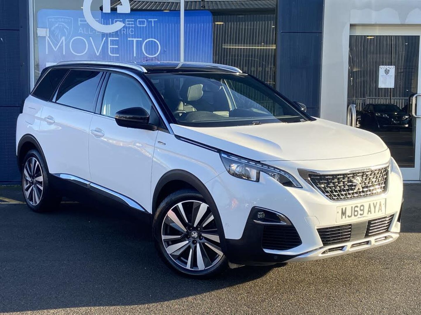 3D connected navigation + voice control, Android Auto, Auto start and stop system, Bluetooth telephone connection, Exterior temperature gauge with frost alarm, Headlight on warning buzzer, Lane departure warning system, Mirror screen with mirror link and car play, Multi function trip computer, PEUGEOT SOS and assistance, Smartphone wireless charging plate, Speed limit recognition, Sports button, Dynamic stability control, DAB Digital radio, MP3 connection, Steering wheel audio controls, USB socket, 2 X Rear number plate lights, Aluminium roof rails, Auto self levelling headlights, Automatic activation of hazard warning lights, Black front wing trim with chrome detail, Body colour door handles, Body coloured bumpers, Body coloured rear spoiler, Body protectors in black, Chrome boot sill trim strip, Chrome front fog light surround, Chrome rear bumper scuff plate, Chrome trim to lower side windows, Dark tinted rear side and tailgate windows, Door mirror mounted LED Peugeot lion approach lights, Electric front/rear windows with one touch/auto up/down, Electrically heated door mirrors, Front windscreen wiper with magic wash cleaning system, Full LED headlights with LED fog lights with static cornering function, sports front bumper and grille, Gloss black B and C pillar and aerodynamic deflector trim, Gloss black rear cluster connecting strip, Gloss black windscreen surround, GT Line emblem in satin copper, Heated rear windscreen with integrated antenna, LED daytime running lights, LED side indicator lights integrated into door mirrors, Lion grey front bumper scuff plate, Nera black door mirrors, Panoramic opening glass roof with electric blind, Power folding door mirrors with blind spot detection indicator and auto dipping function in reverse gear, Radiator grille in chrome edge trim with chequered design and black 'PEUGEOT' lettering, Rear LED Peugeot signature 'Claw Effect' lights, Rear side window blinds, Rear windscreen wiper with auto activation when reversing, Stainless steel roof arches, Twin exhaust tailpipe, Wheel arch protectors, 2 cupholders in front centre console, 2 individual folding 3rd row seats, 230V socket on rear centre console, 3 x 12V power sockets, 4 Grab handles retractable and damped, Aikinite stitching in armrest, gear lever and dashboard facia, Automatic dual-zone climate control, Blue ambient lighting for connecting zone, Blue ambient lighting to front door panels, central storage and cupholders, Blue ambient lighting to head up instrument panel, Electric power steering with reach and rake adjustable steering column, Flat folding rear seats, Flocked front door pocket interior with blue ambient lighting, Flocked glovebox interior, Fold flat front passenger seat with picnic table, Front central armrest with butterfly-wing opening and storage compartment, Front interior light with 2 reading spotlights and rear interior light with timer, Front passenger seat height adjust, Gear shift indicator, Headrests on 2nd/3rd row seats, Heating/air conditioning outlet in rear, Illuminated glovebox, Illuminated vanity mirror, Imila cloth/Leather upholstery, Isofix child seat fittings x 3 in the second row, LED interior illumination, Map pocket on front seat backs, Mistral floor mats with Aikinite contrast stitching, Mistral full grain perforated leather steering wheel with aikinite stitch detail and satin chrome 'GT Line' emblem, Rear centre console with air vents, Rear reading lights x 2, Rear seat underfloor storage, Retractable parcel shelf, Roof lining - Mistral black, Satin chrome digital instrument panel and touchscreen trim, Satin chrome front door panel recess trim, Satin chrome gear lever, Satin chrome interior door handles, Satin chrome scorpion's tail and toggle switch trim, Seatbelt unfastened on the move audible and visual alert for front and rear seats, Stainless Steel Scuff Plates, Twin rear coat hooks, Children's pack - 5008, Driver sport pack - 5008, Safety plus pack - 5008, Visibility pack - 5008, 3 Isofix location points, ABS + EBD + EBA, Adaptive driver and front passenger airbags including passenger airbag deactivation function, Collision mitigation braking system, Electronic parking brake, ESP and ASR traction control with deactivation switch, Five 3 point rear safety belts, Front and rear curtain airbags, Front optimised safety headrests and 3 x rear retractable headrests with height adjustable, Front seatbelt unfastened audible+visual warnings, Front side airbags, Front three point retractable seatbelts height adjustable with pre tensioners and force limiters, Front ventilated disc brakes, Hill start assist, Rear disc brakes, Rear three-point retractable seatbelts (x3) with pre-tensioners and force limiters in the outer rear seats, Tyre pressure monitor, Automatic door lock/re-lock after 30 seconds, Child lock control of rear doors and windows, Electric tailgate with Peugeot open & go system, Remote control central locking with two plip keys, Rolling code transponder immobiliser, Thatcham cat 1 ultrasonic alarm, Brumeo fabric interior trim, Satin chrome dash trim